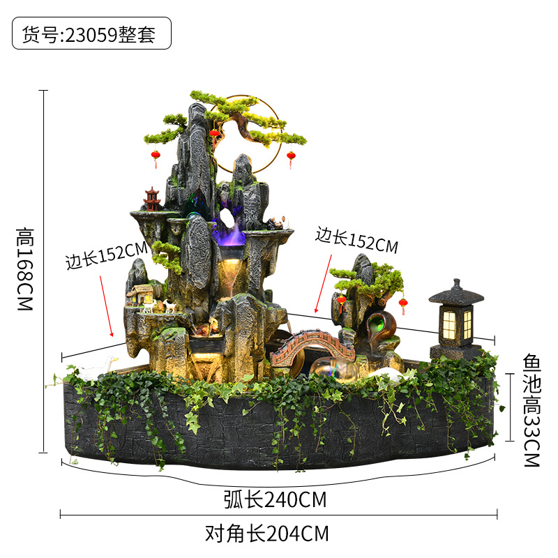 대형 바위 분수 흐르는 물 물고기 연못 풍경 분재 거실 발코니 사무실 실내 야외 안뜰 풍경 장식품