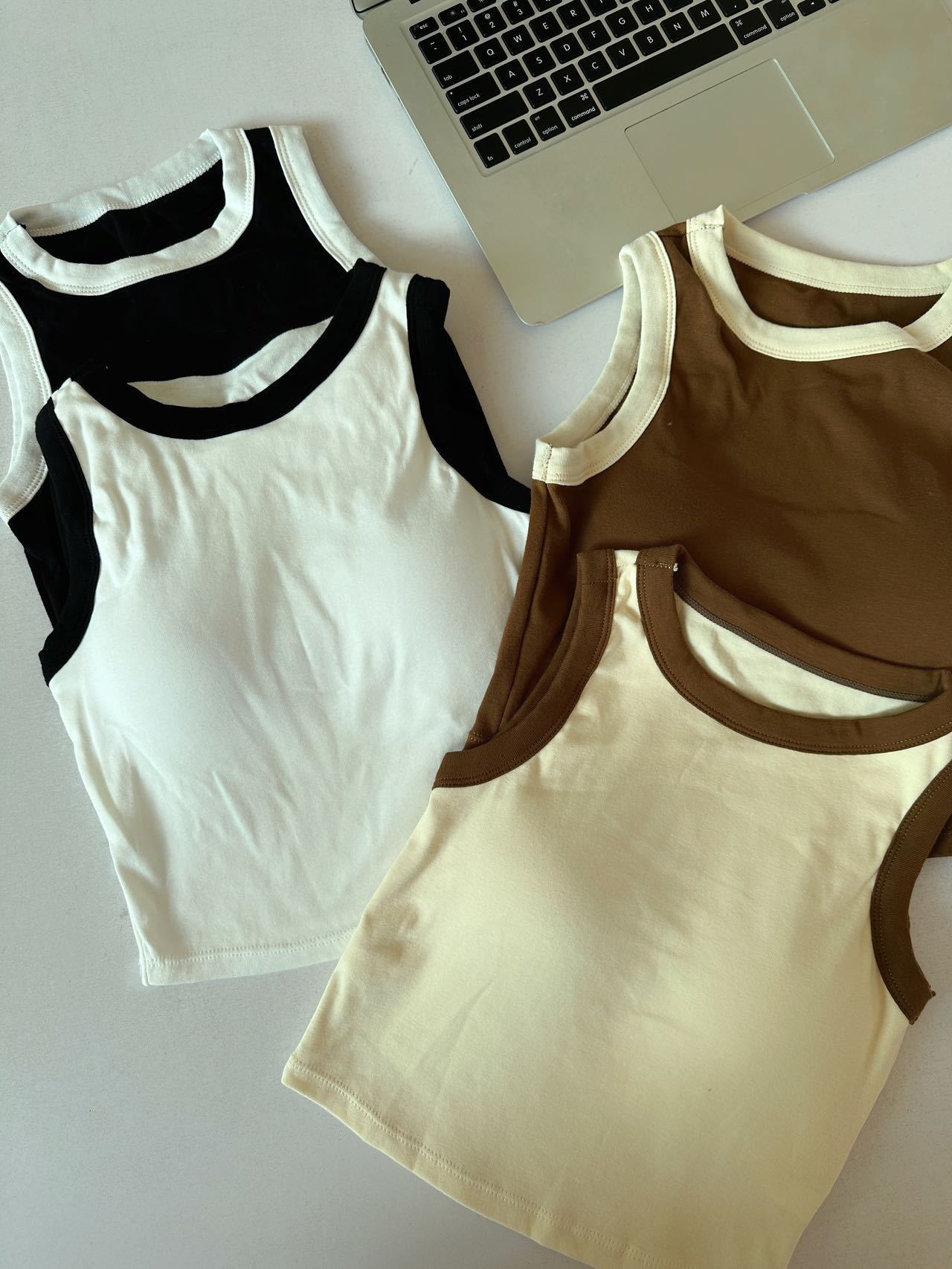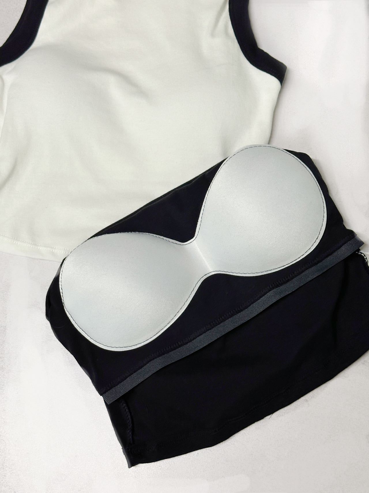 새로운 한국 스타일 대비 색상 원피스 아름다운 등 여성용 레트로 스파이스 걸 고정 컵 겉옷 여성용 가슴 패드가있는 모든 매치 I 자형 조끼