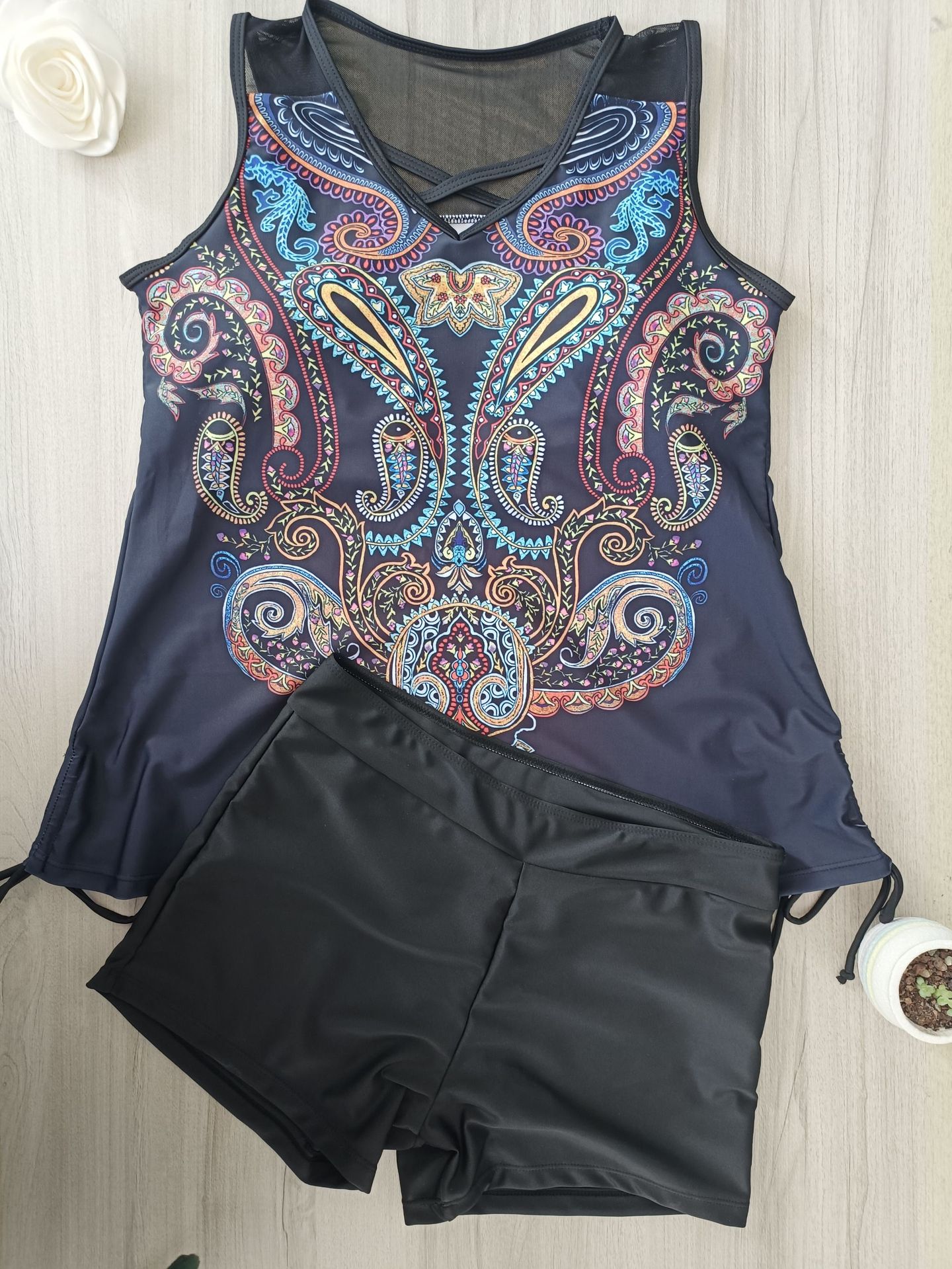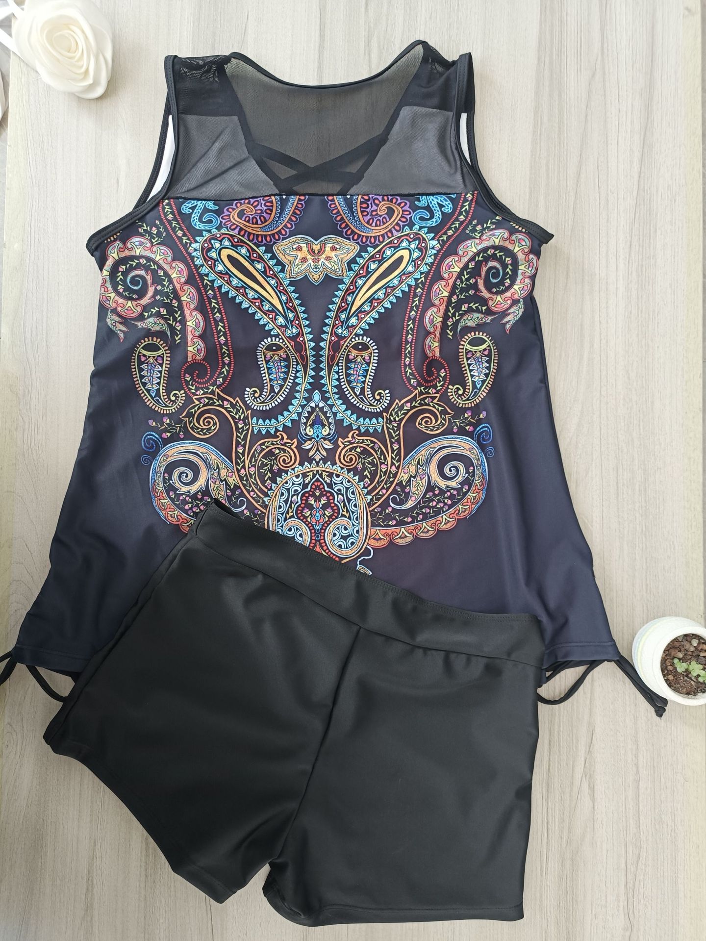 크로스 보더 tankini 보수적 인 분할 수영복 플러스 사이즈 인쇄 배꼽 커버 플러스 비료 유럽과 미국의 대외 무역 수영복 아마존 증가스토어 가기