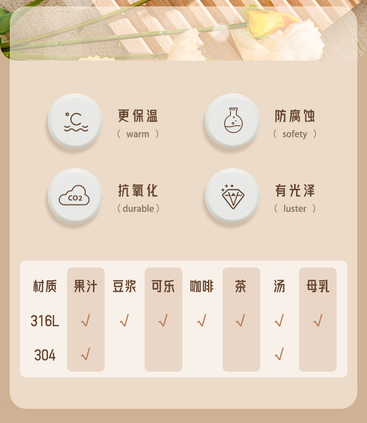 316L 머그 스테인레스 스틸 주전자, 진공 단열 및 보냉 기능, 뚜껑이 있는 사무용 물컵, 커피 컵, 꽃무늬 찻잔
