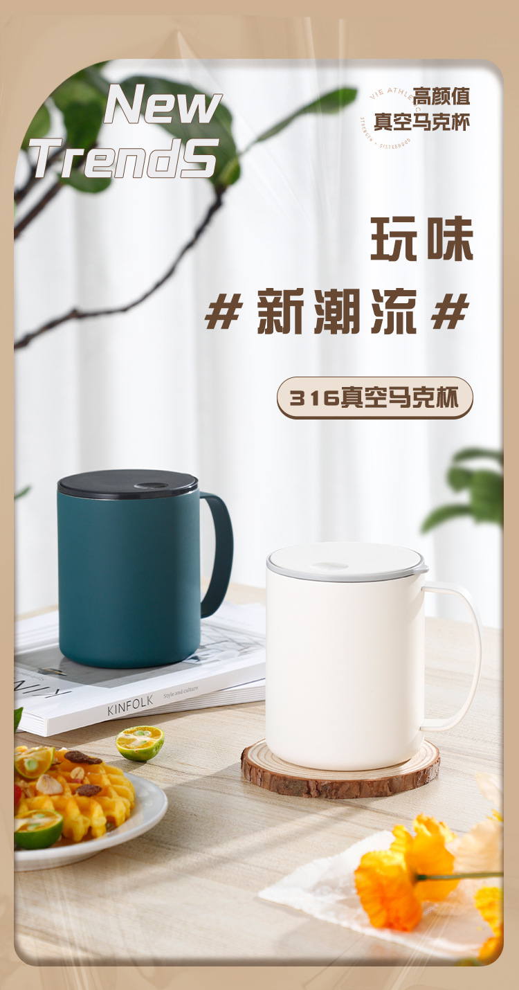 316L 머그 스테인레스 스틸 주전자, 진공 단열 및 보냉 기능, 뚜껑이 있는 사무용 물컵, 커피 컵, 꽃무늬 찻잔스토어 가기