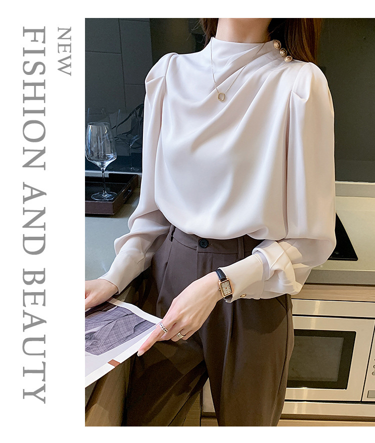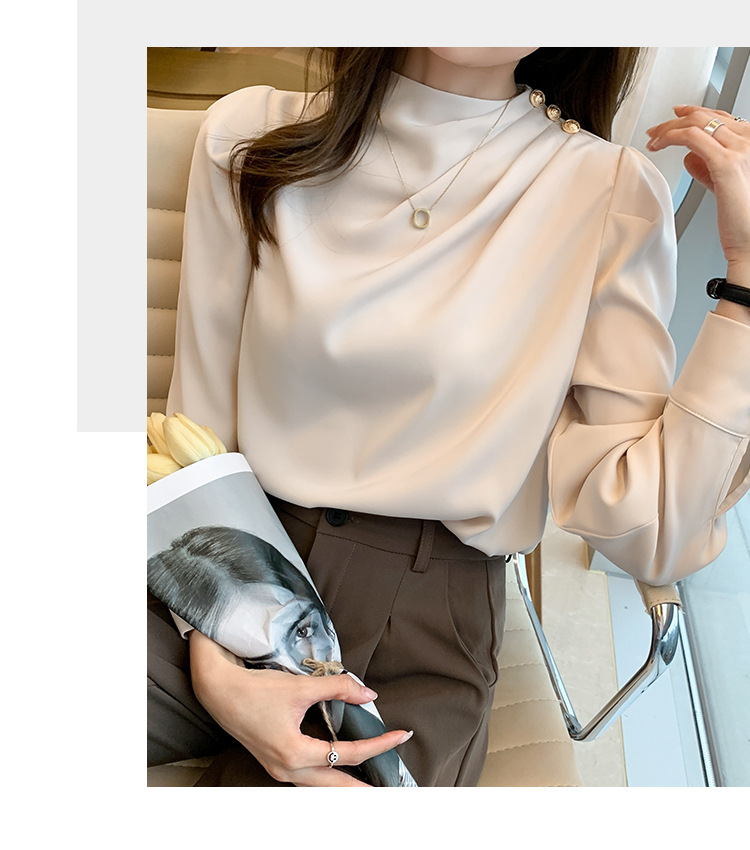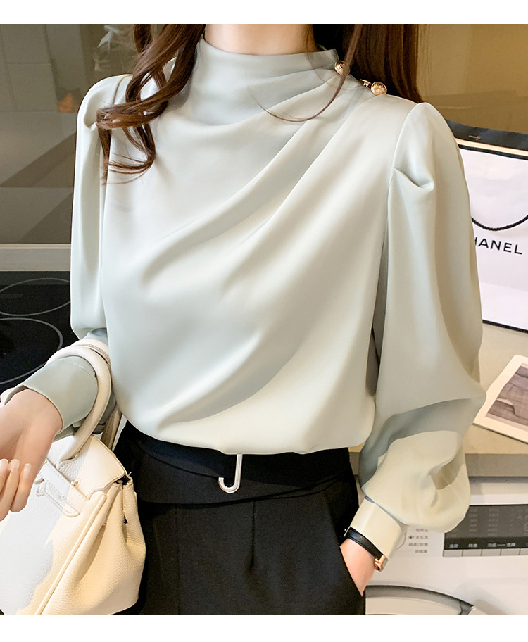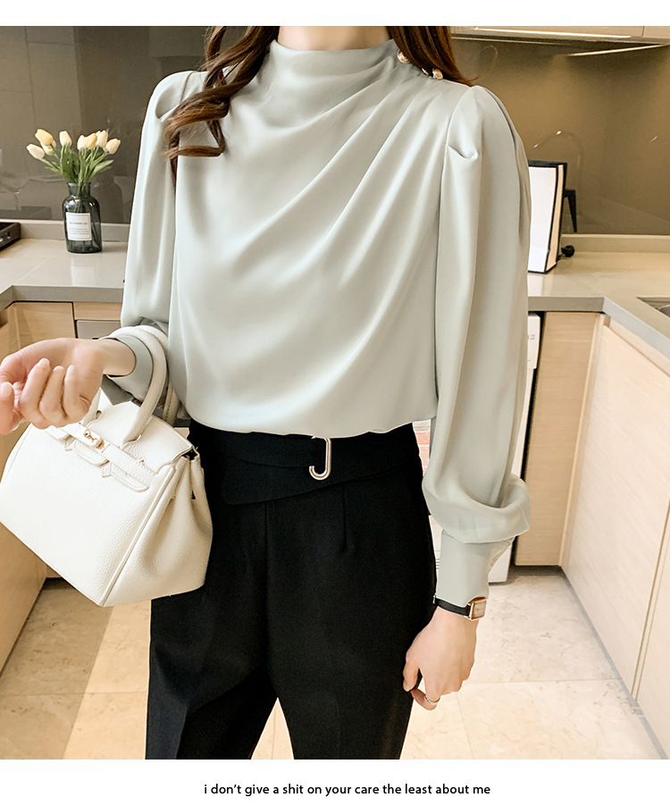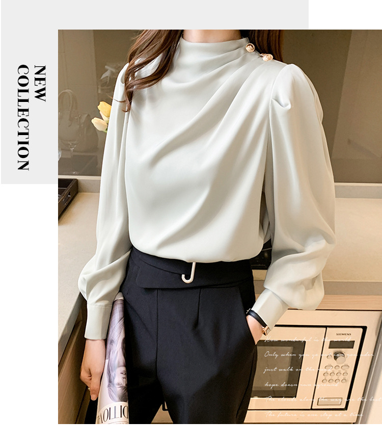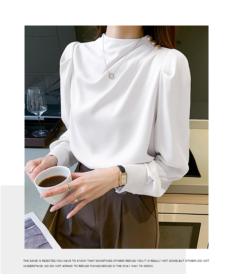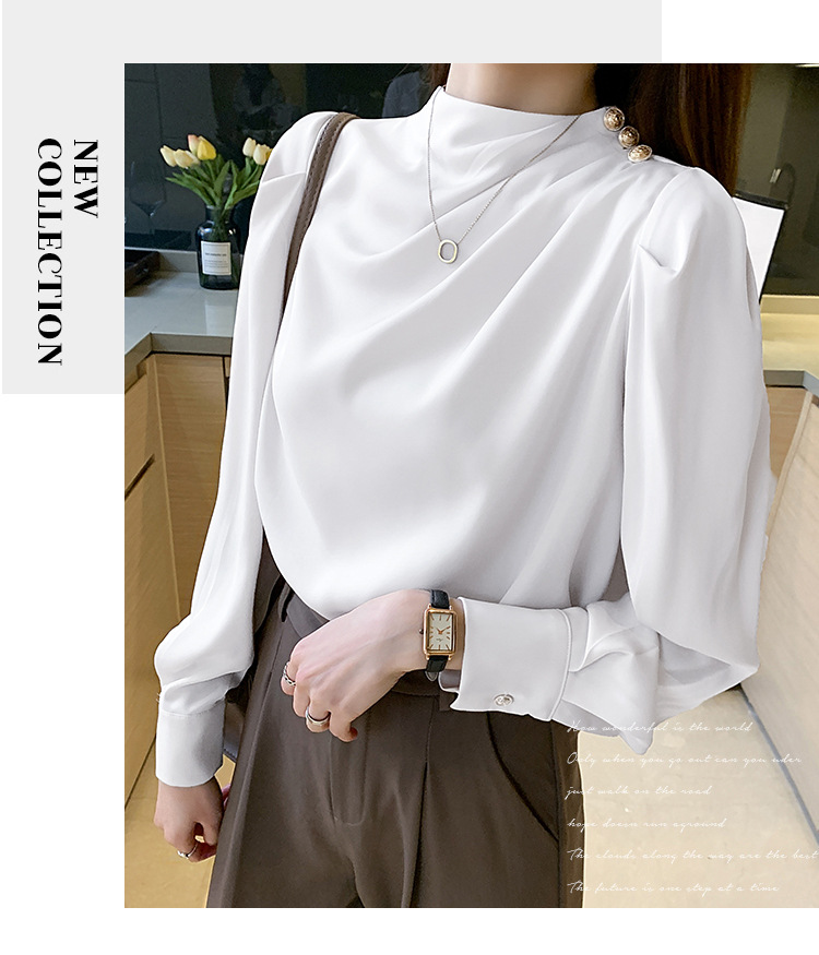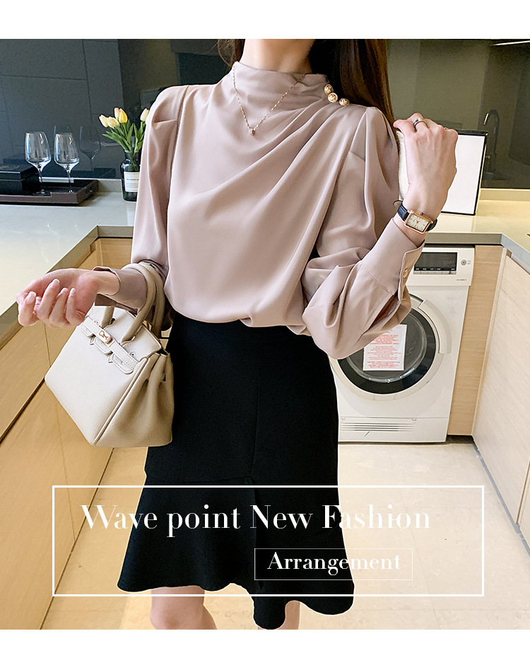 2024 봄 새로운 한국 스타일 올 매치 라운드 넥 랜턴 슬리브 유행 긴 소매 셔츠 여자의 봄 탑