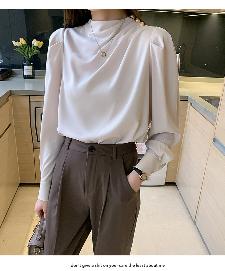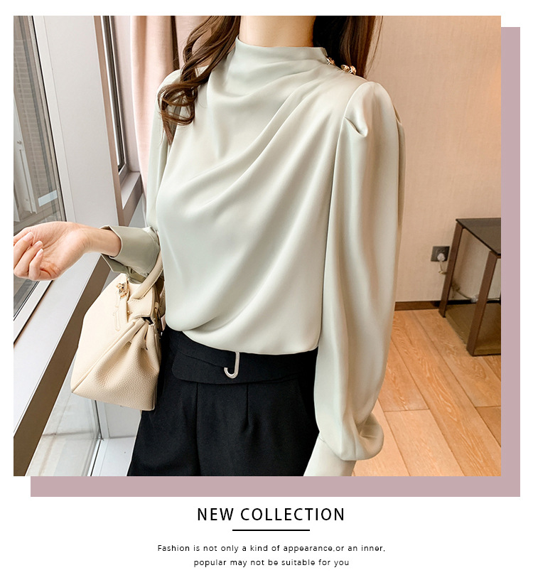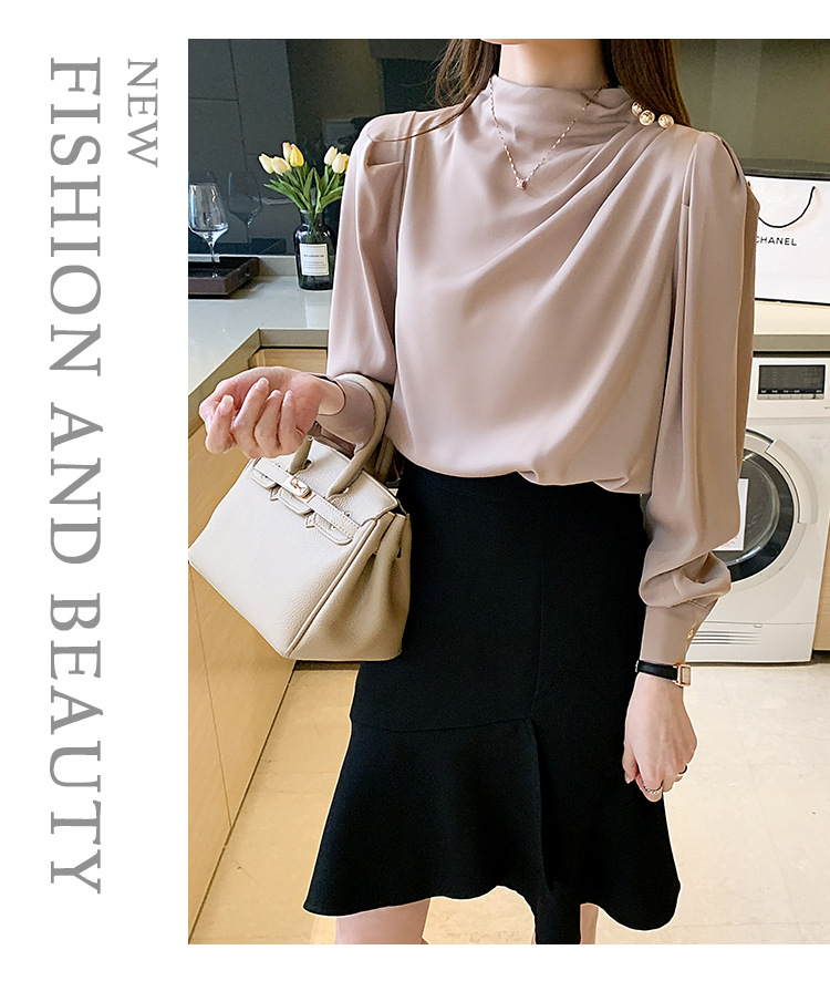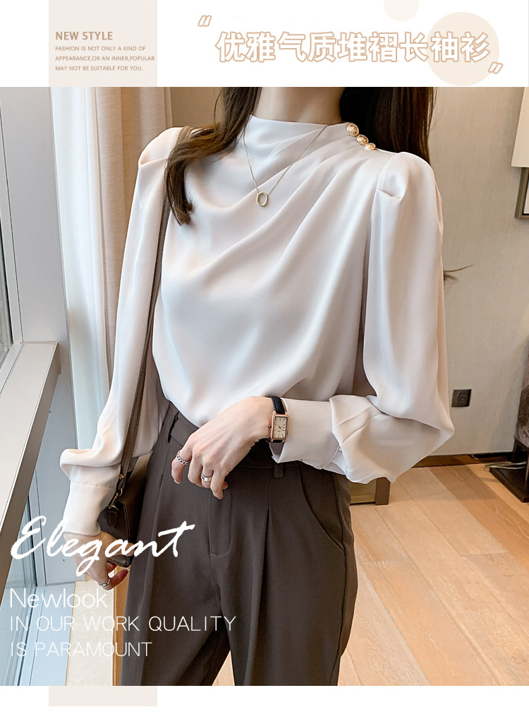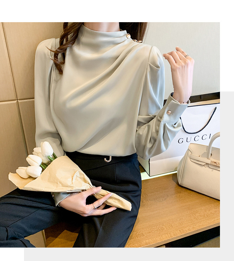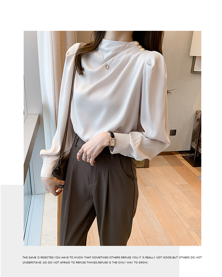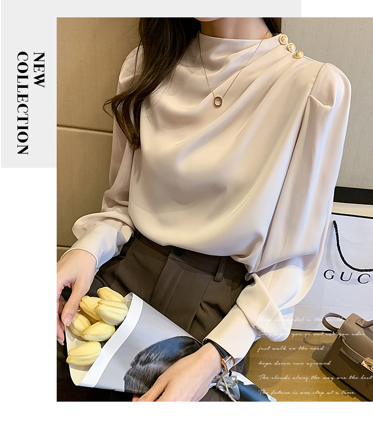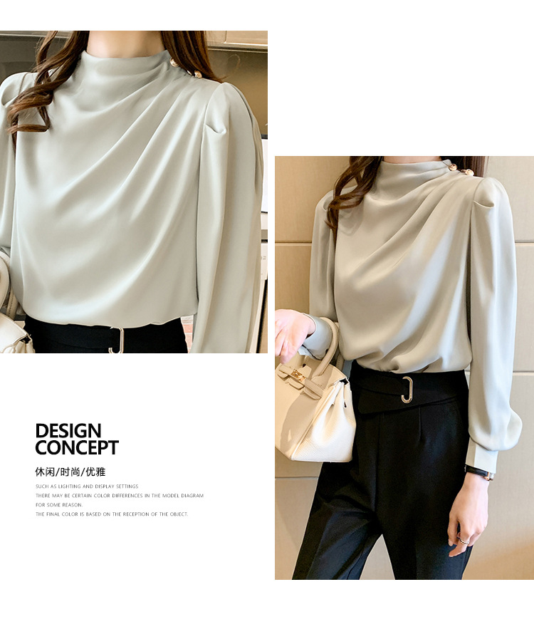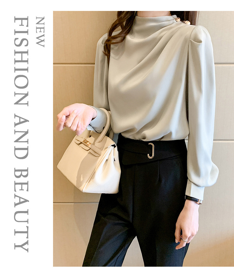 2024 봄 새로운 한국 스타일 올 매치 라운드 넥 랜턴 슬리브 유행 긴 소매 셔츠 여자의 봄 탑