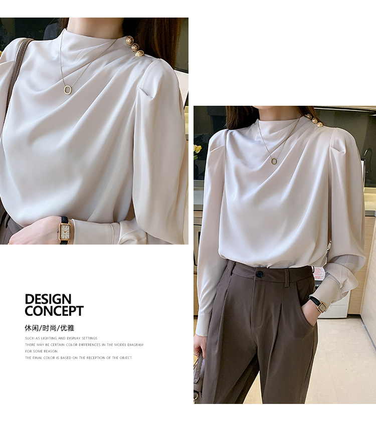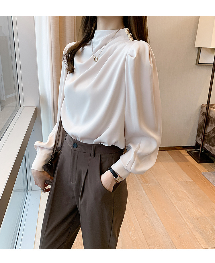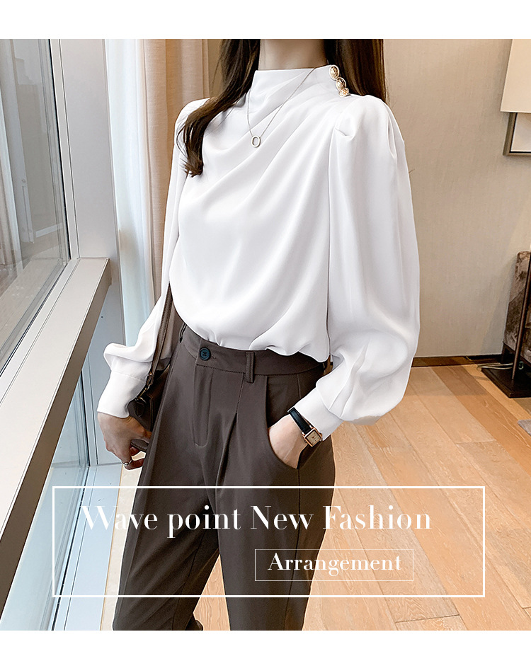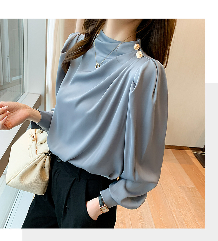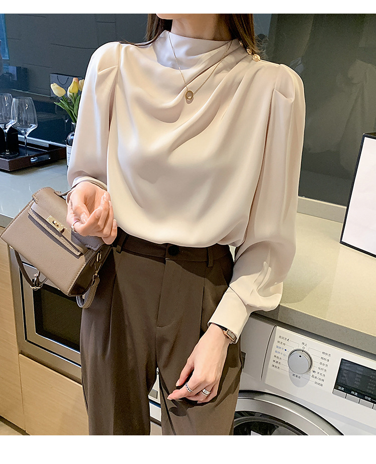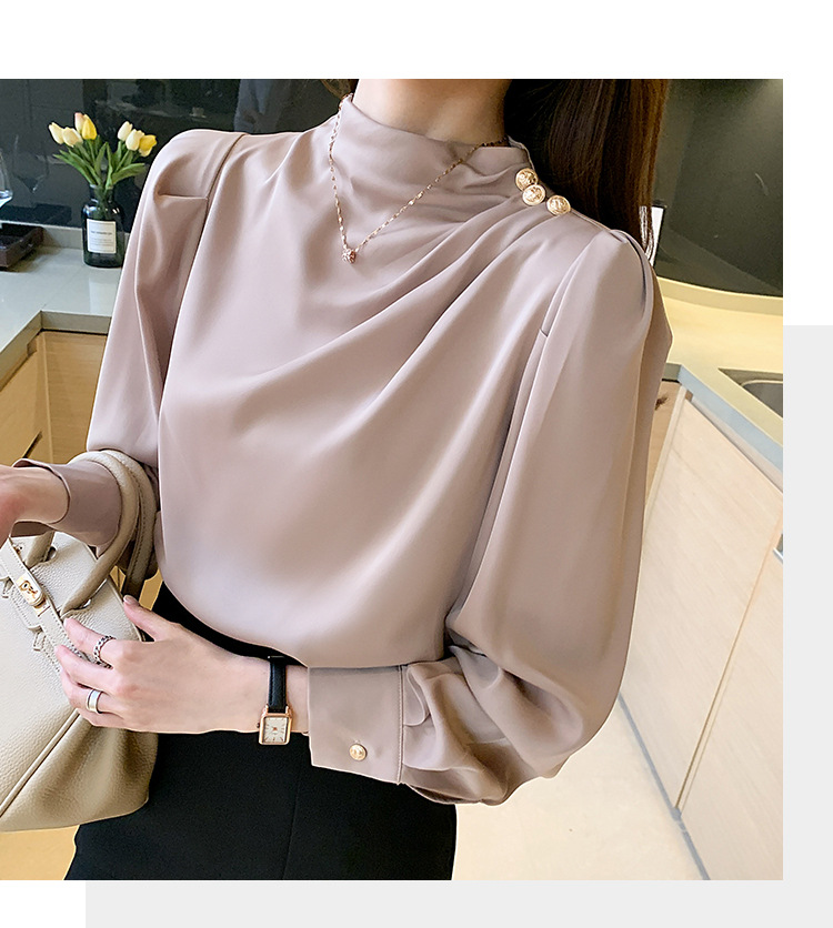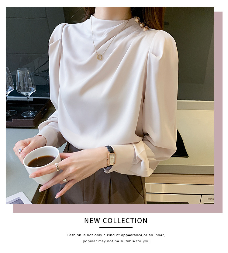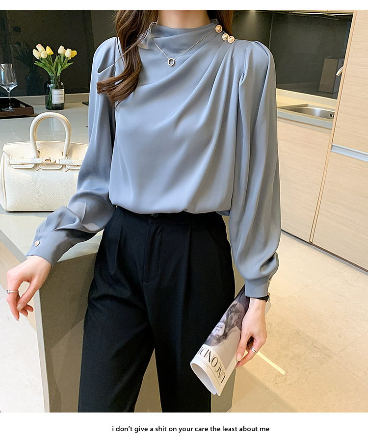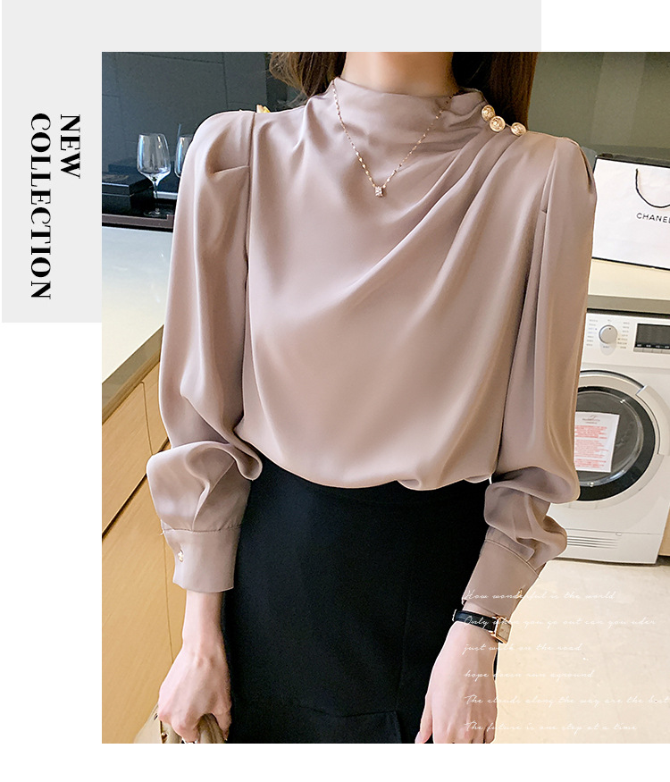 2024 봄 새로운 한국 스타일 올 매치 라운드 넥 랜턴 슬리브 유행 긴 소매 셔츠 여자의 봄 탑