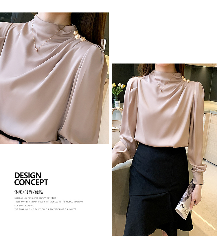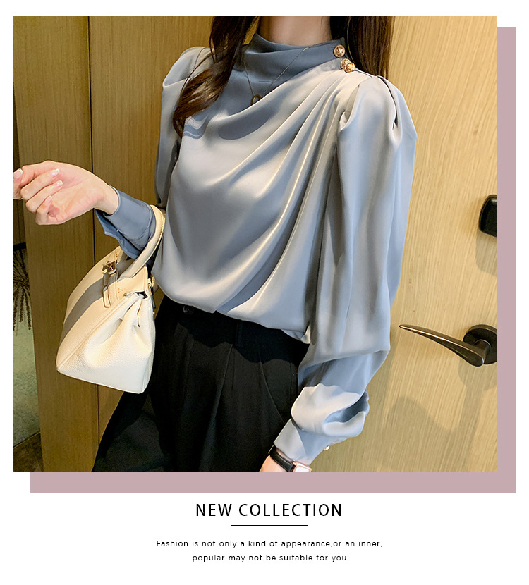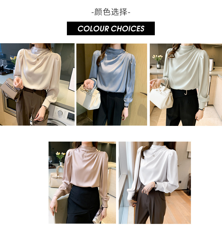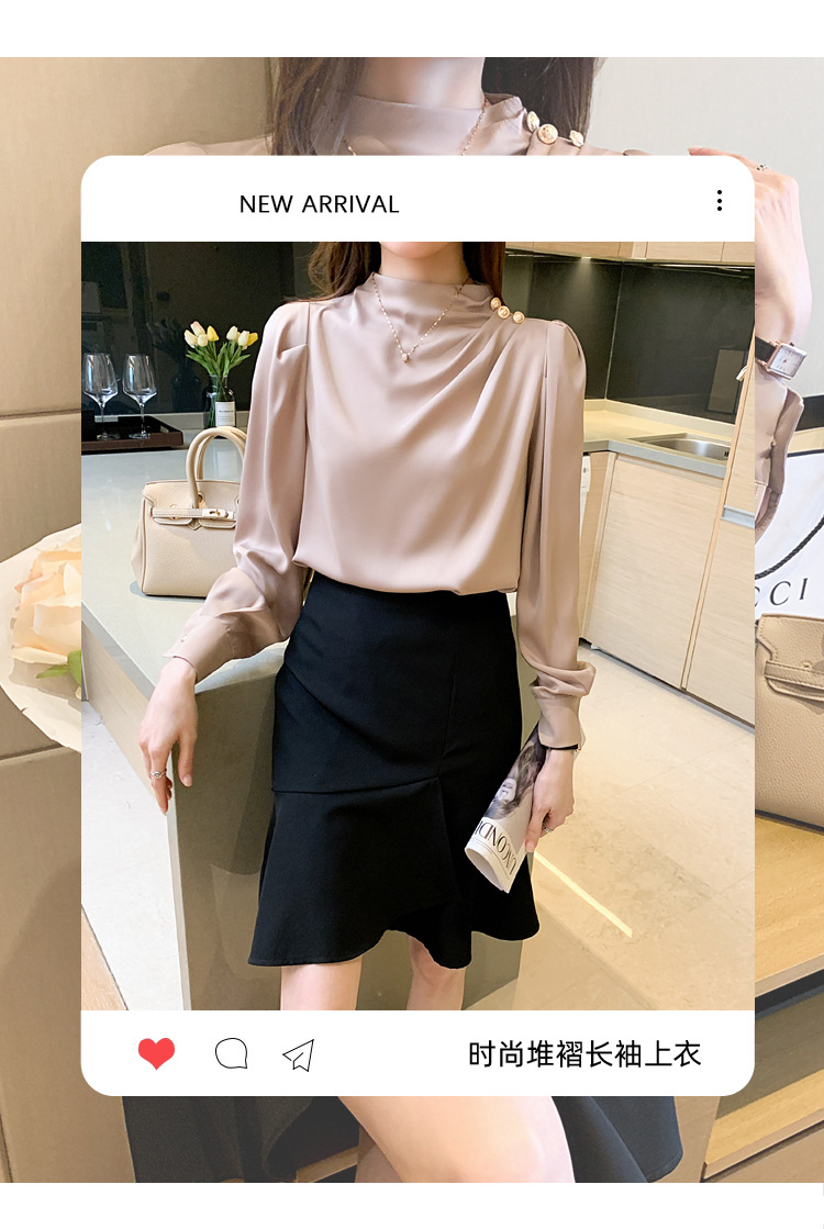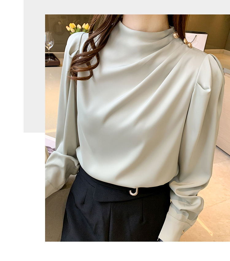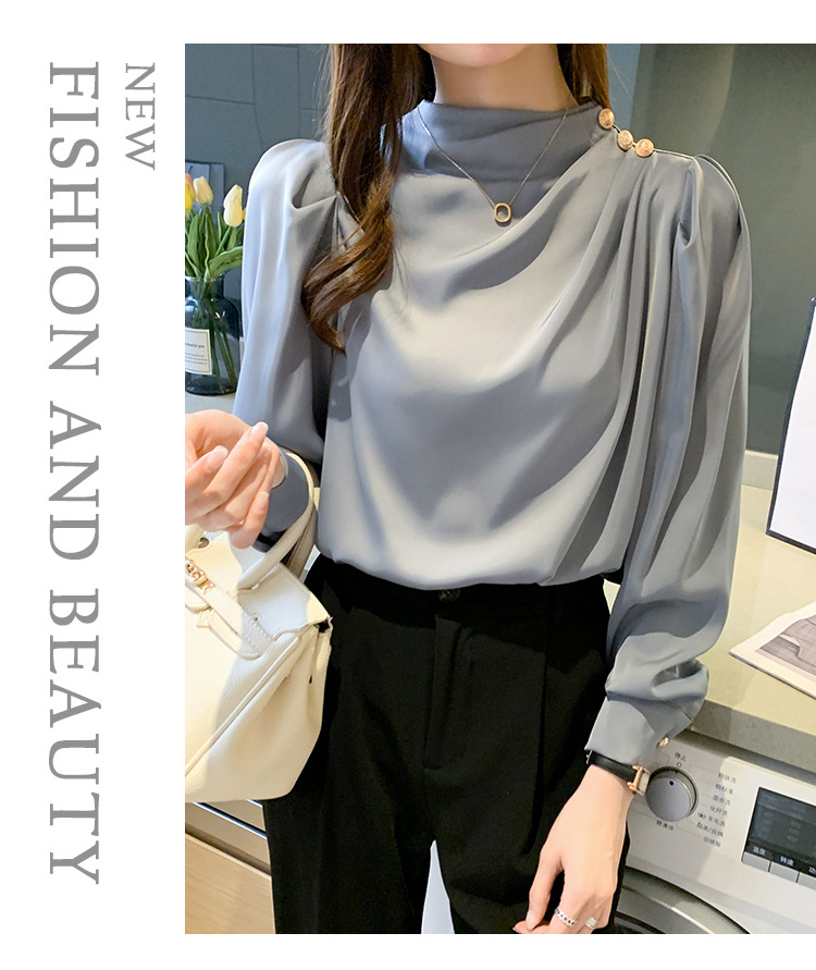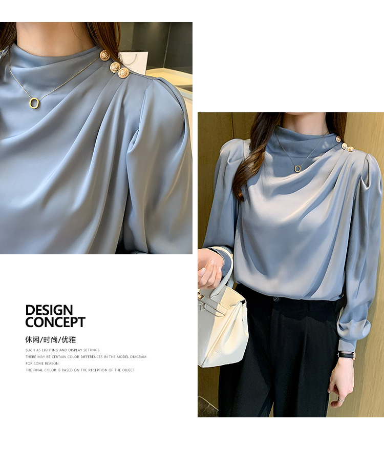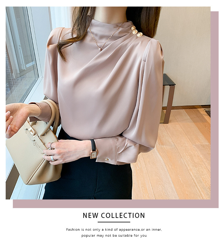 2024 봄 새로운 한국 스타일 올 매치 라운드 넥 랜턴 슬리브 유행 긴 소매 셔츠 여자의 봄 탑