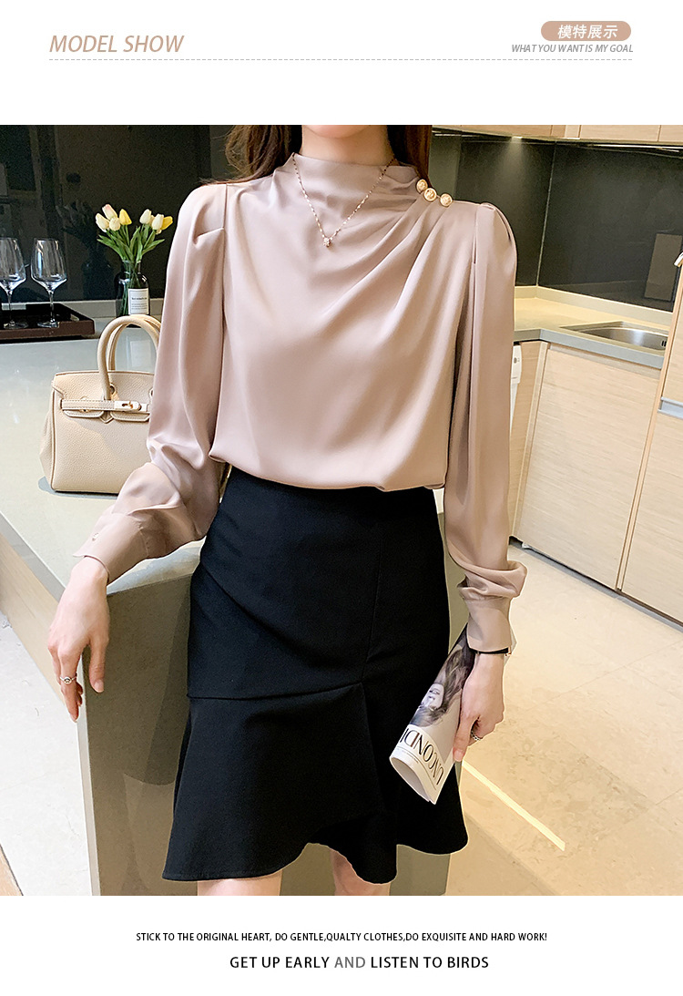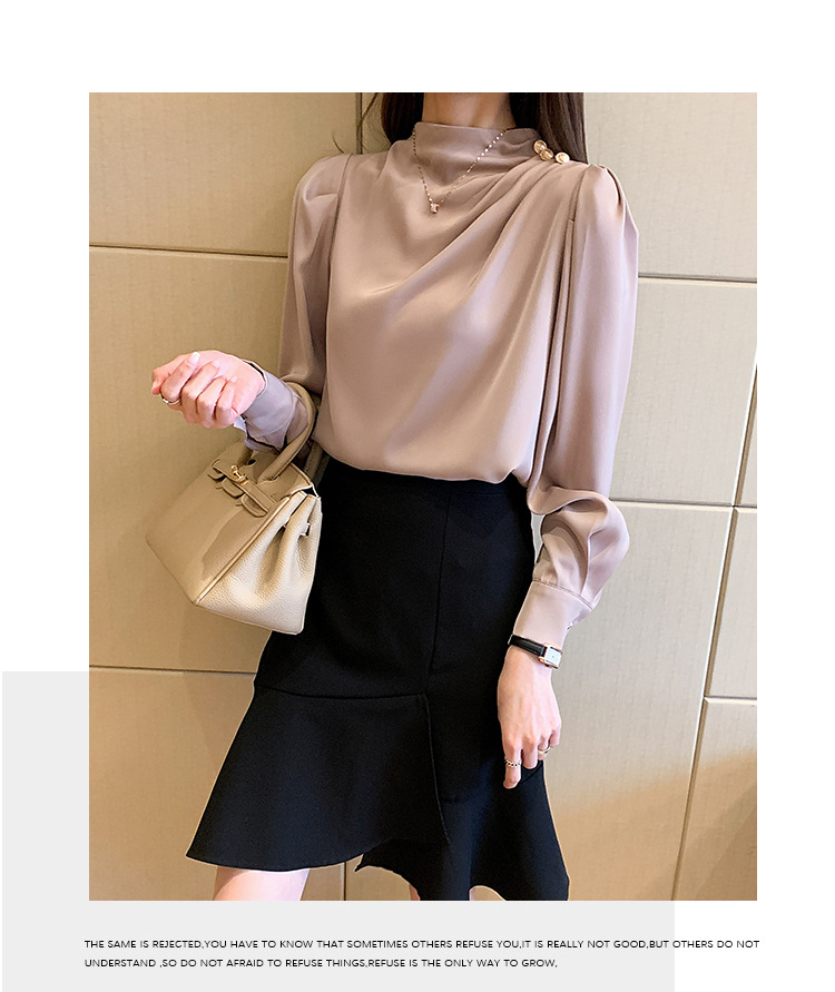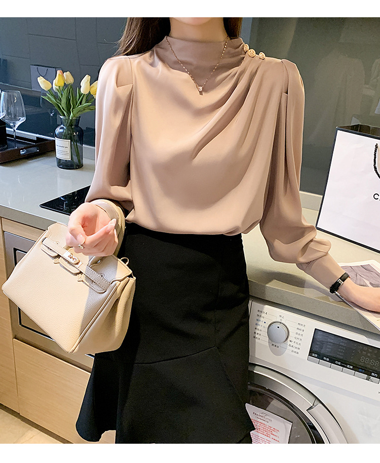 2024 봄 새로운 한국 스타일 올 매치 라운드 넥 랜턴 슬리브 유행 긴 소매 셔츠 여자의 봄 탑스토어 가기