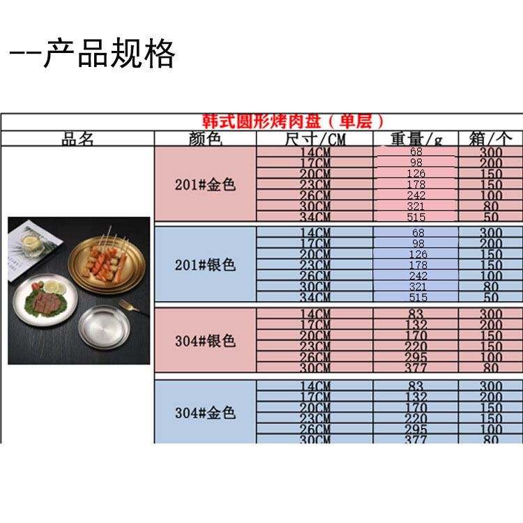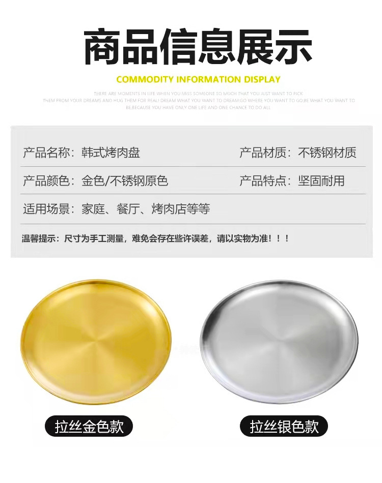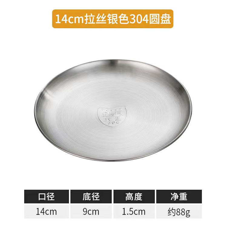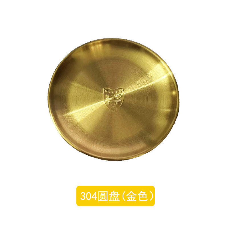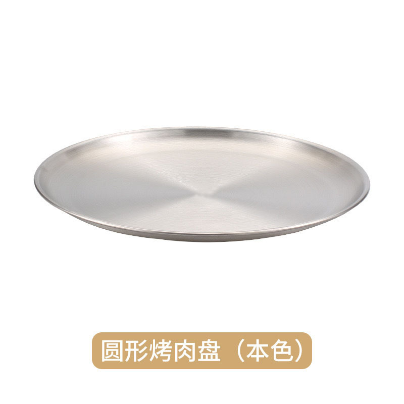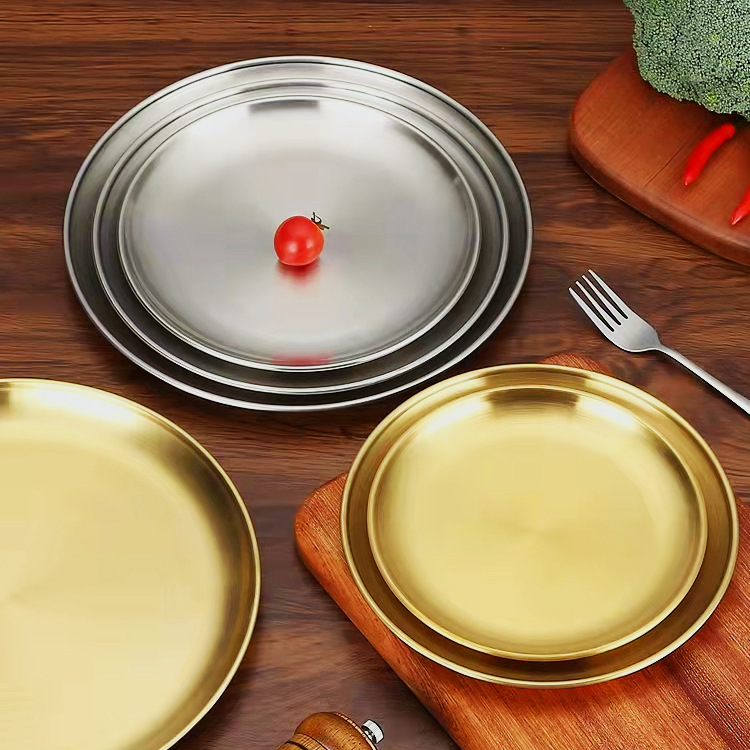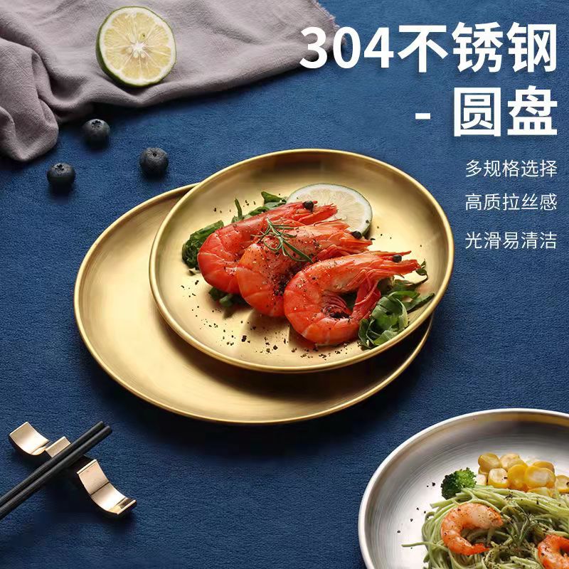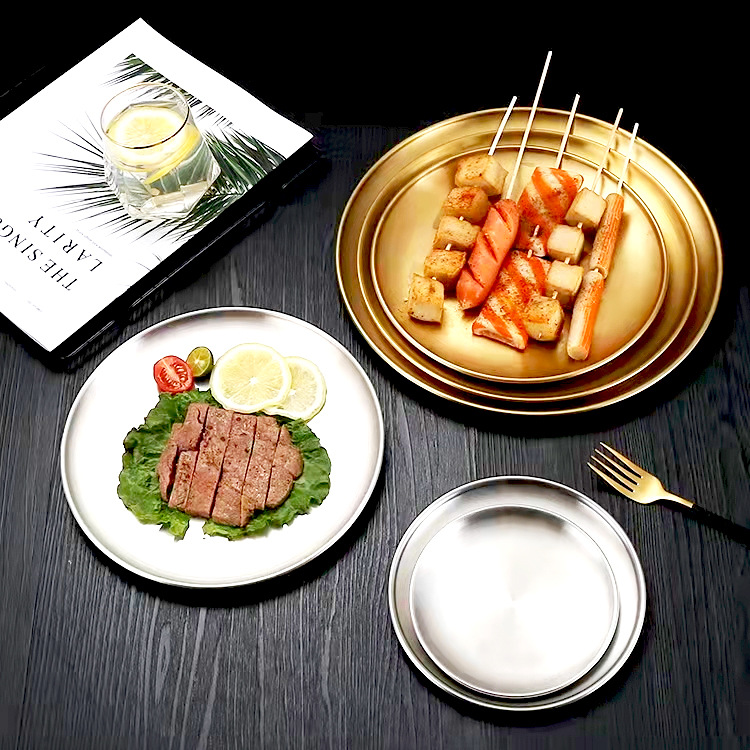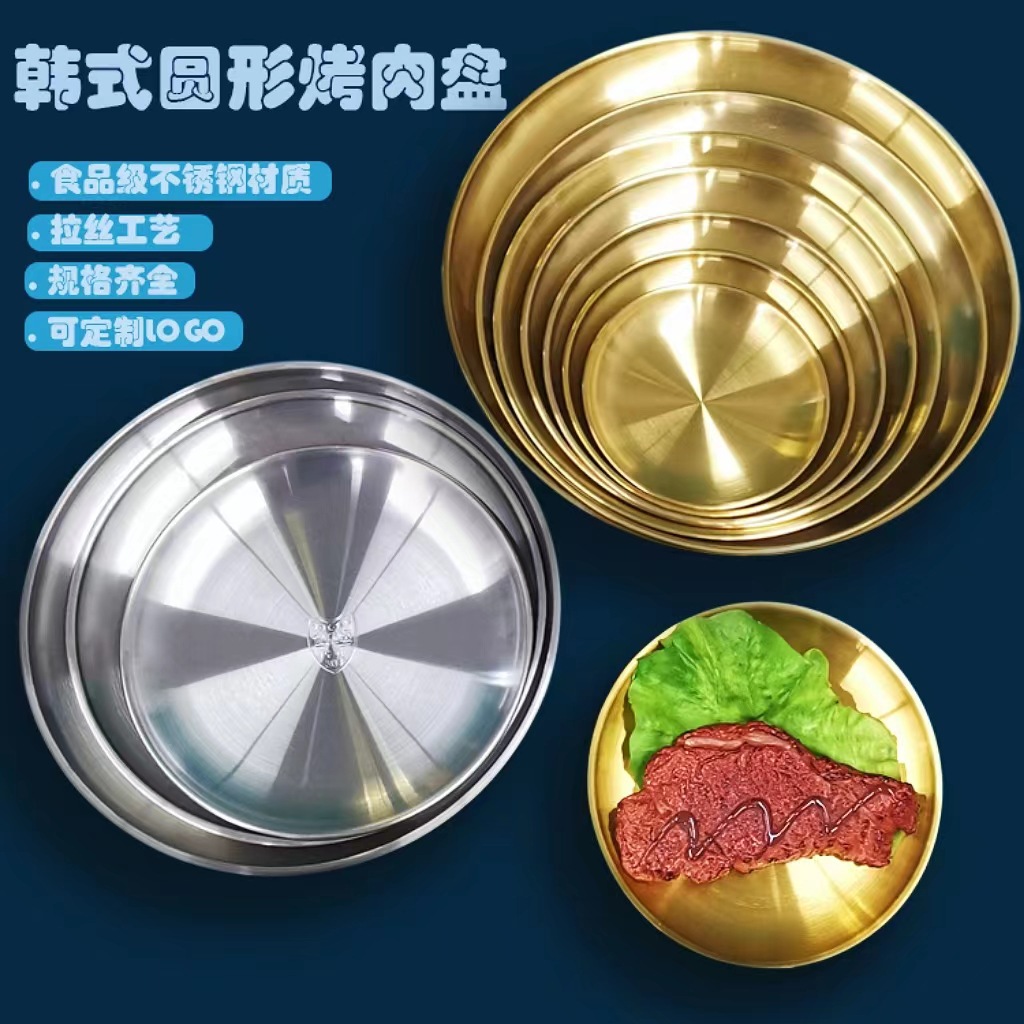 한국식 원판 황금 과일 접시 케이크 접시 얕은 접시 뼈 접시 와이어 드로잉 플레이트 304 스테인레스 바베큐 접시