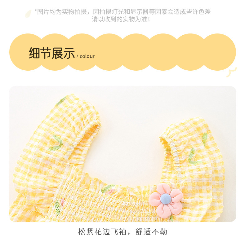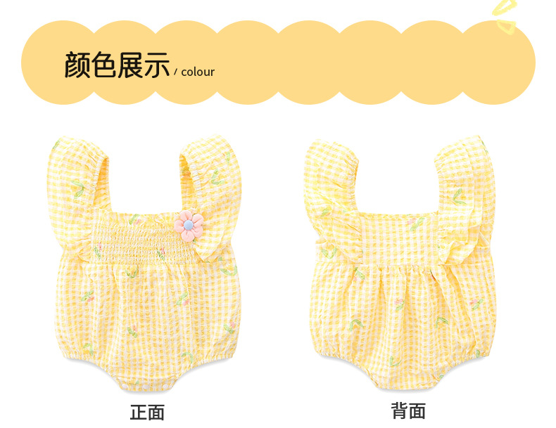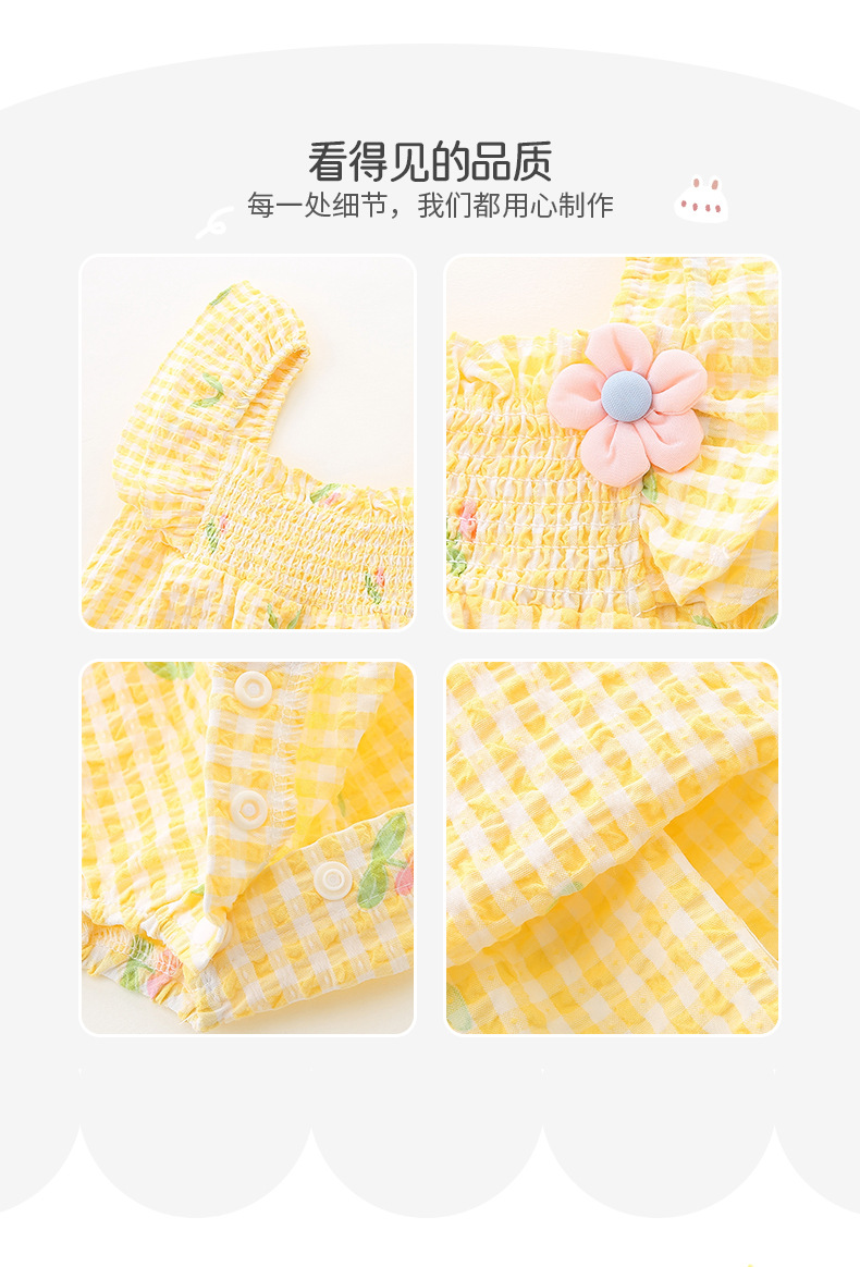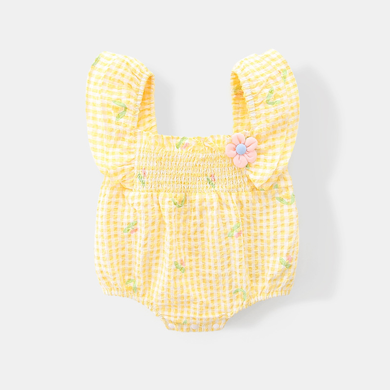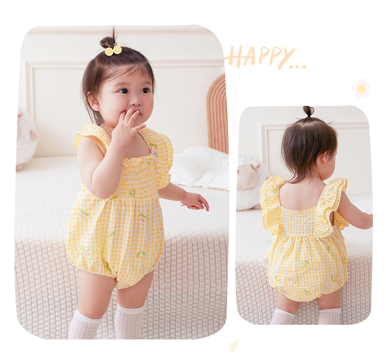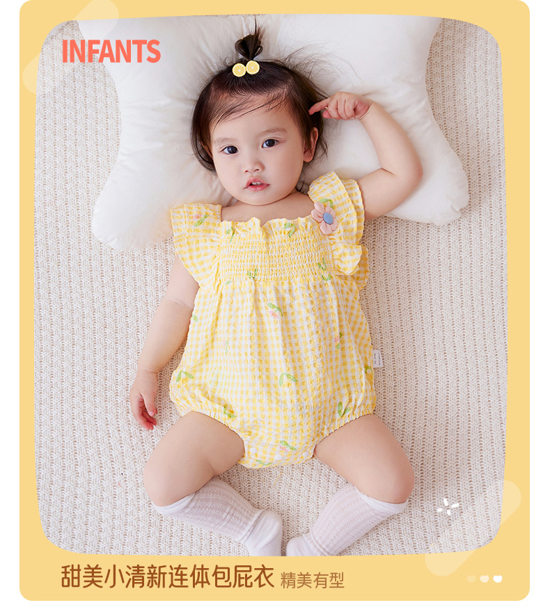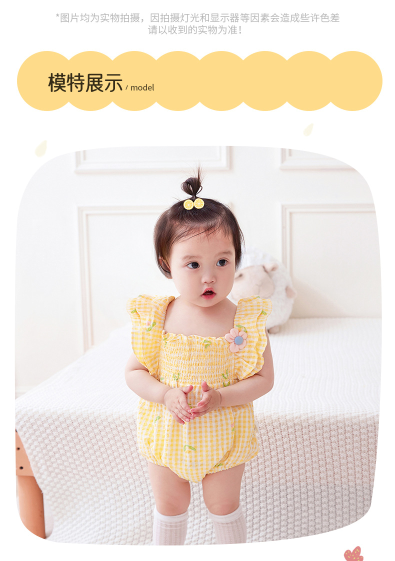 아이디어 소녀 여름 신생아 아기 얇은 점프 슈트 아기 격자 무늬 삼각형 방귀 코트 여름 3151스토어 가기