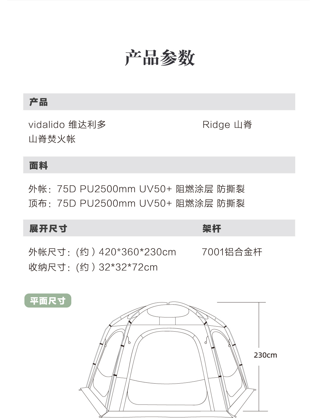 Vidalido Ridge 야외 캠핑 육각형 반구 거실 계정 결합 휴대용 텐트 TPU 비 및 화재스토어 가기