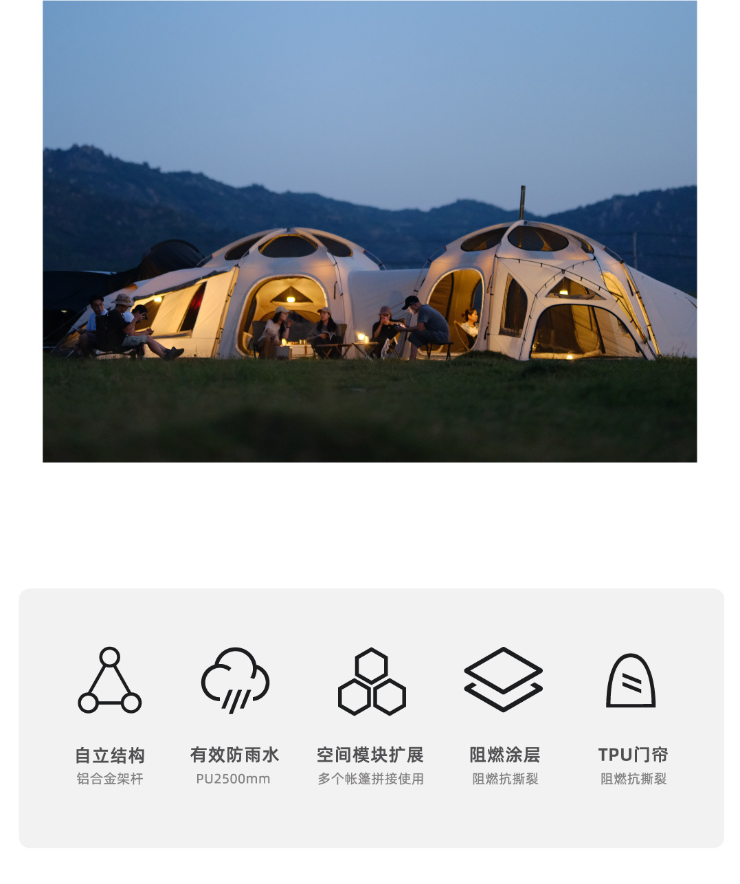 Vidalido Ridge 야외 캠핑 육각형 반구 거실 계정 결합 휴대용 텐트 TPU 비 및 화재