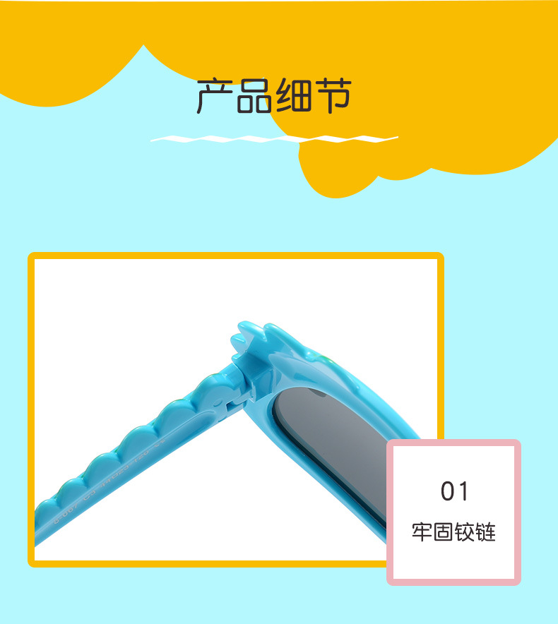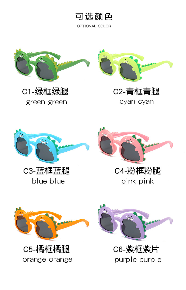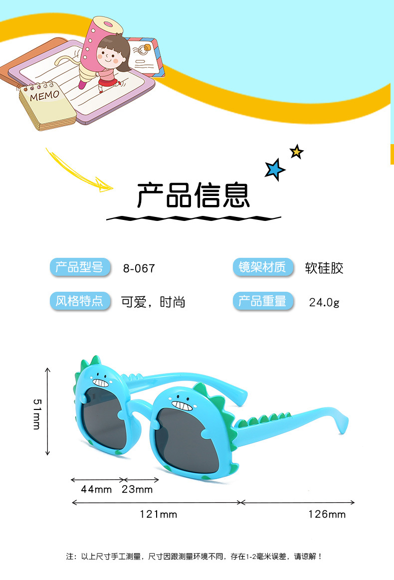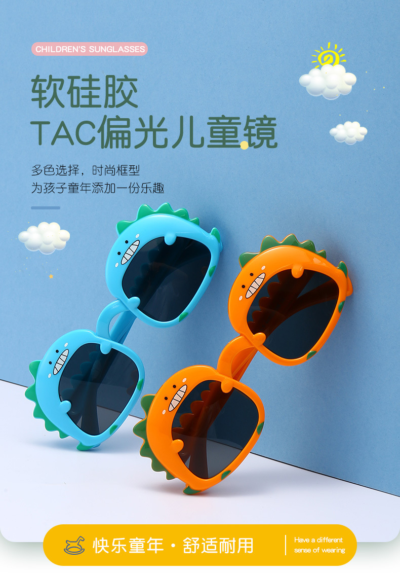 새로운 스타일의 소년과 소녀를 위한 만화 어린이 편광 선글라스, 부드러운 실리콘 선글라스, 여성용 작은 공룡 귀여운 안경, 고급형스토어 가기