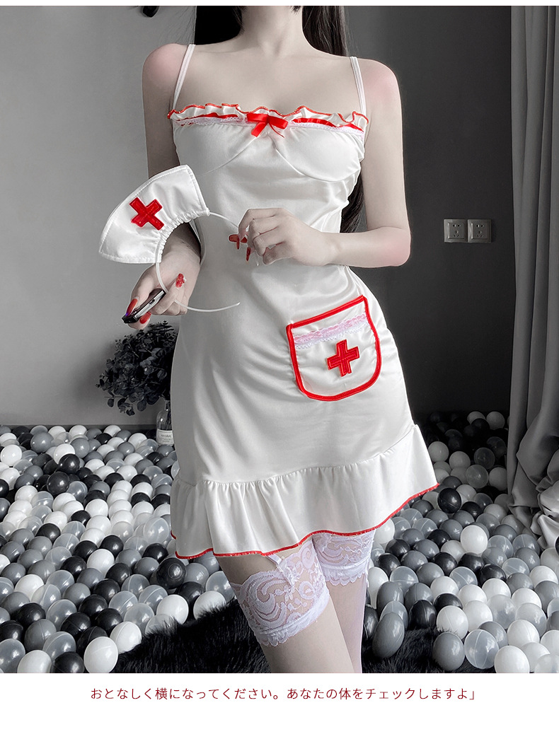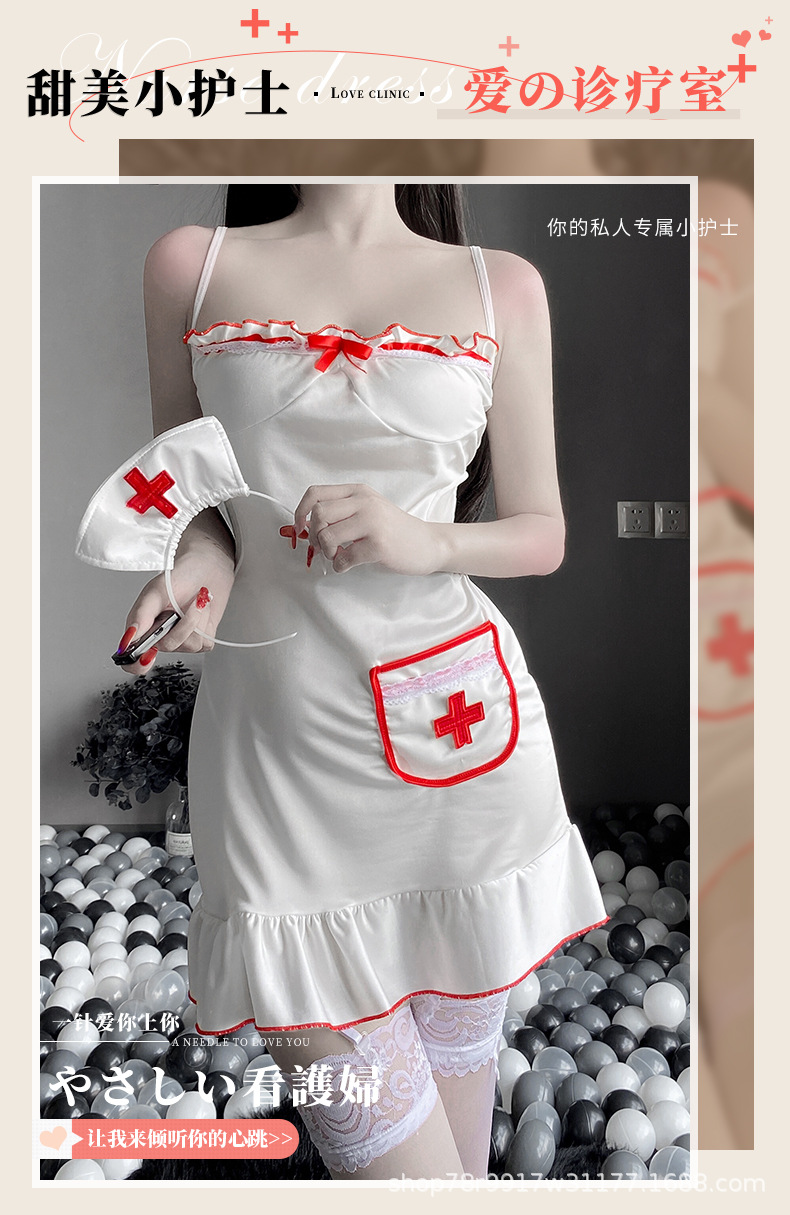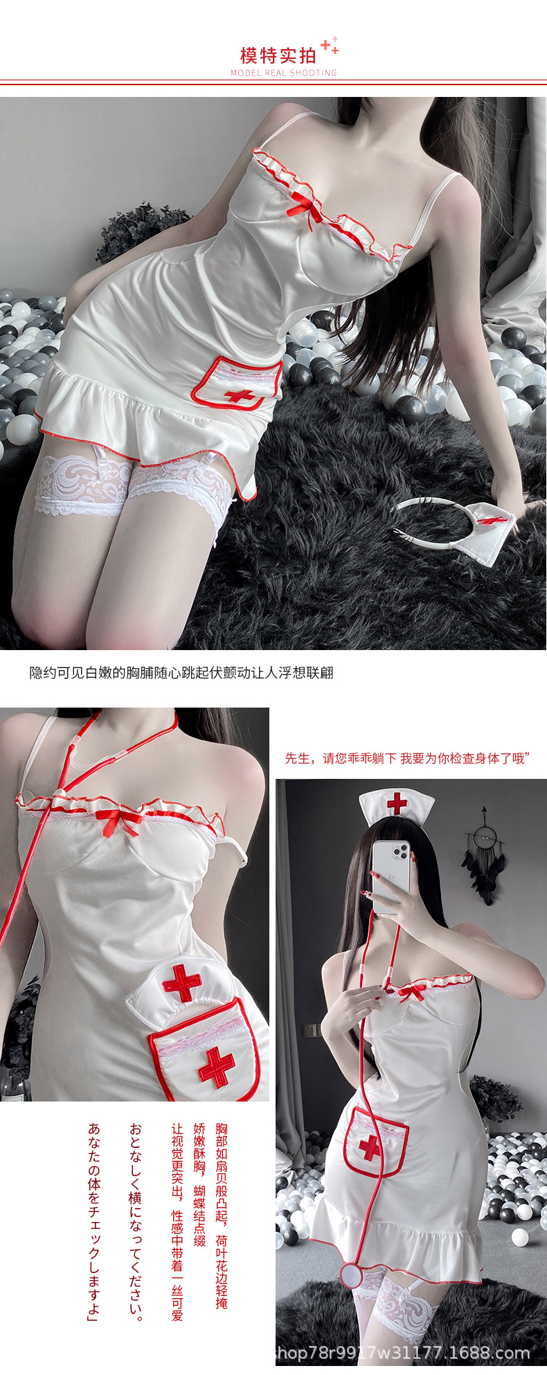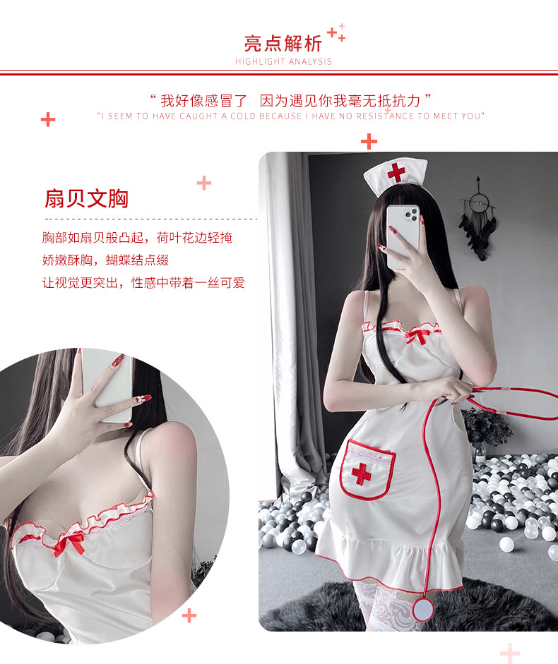 크로스 보더 섹시 속옷 폴리 에스테르 라이트 간호사 유니폼 유혹 관점 깊은 V 칼라 프릴 결합 머리 1322스토어 가기
