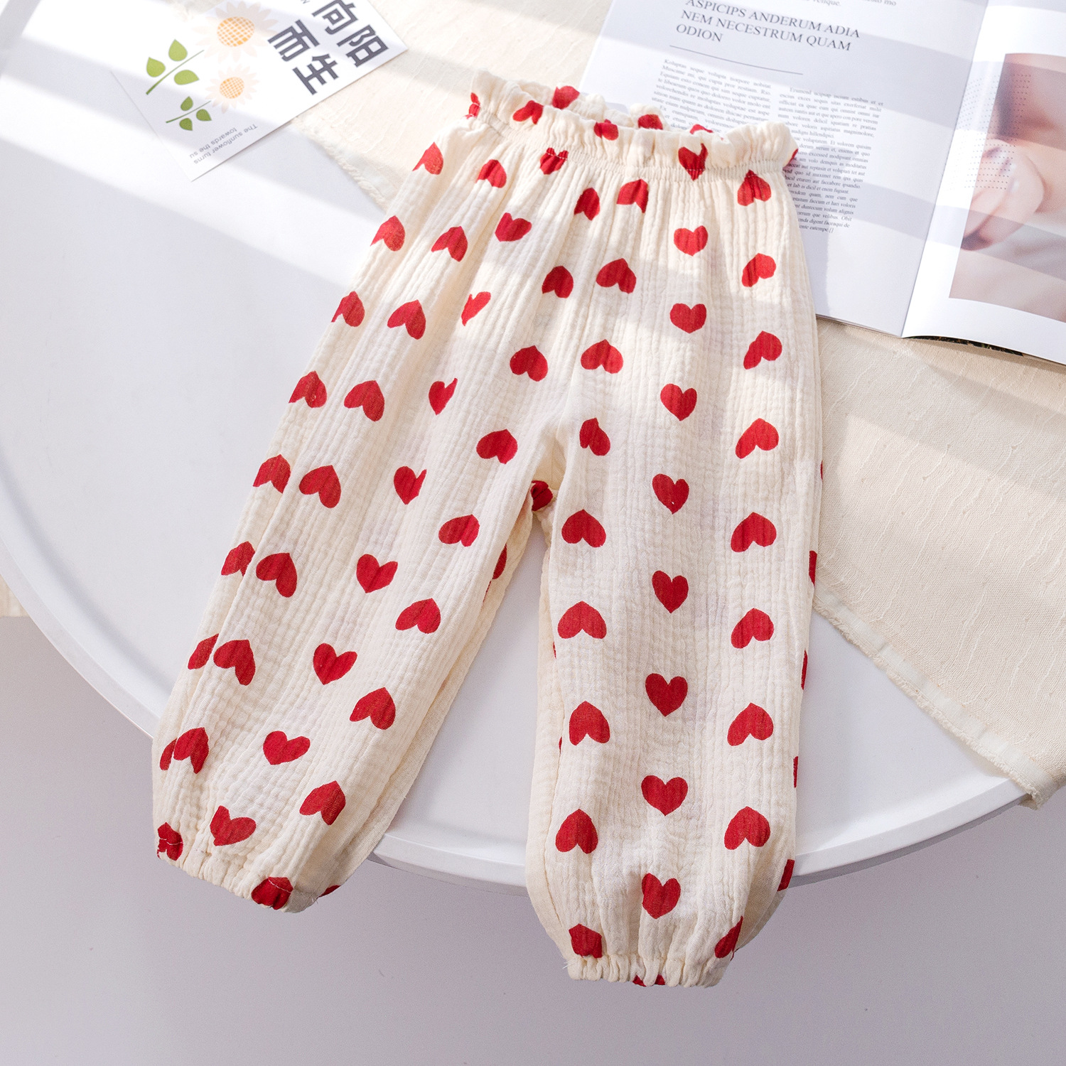 소년과 소녀를위한 어린이 한국식 여름 새로운 모기 방지 바지 달콤한 프린트 에어컨 바지 아기의 다리 통기성 블루머