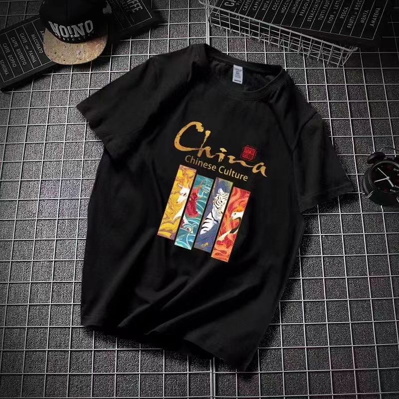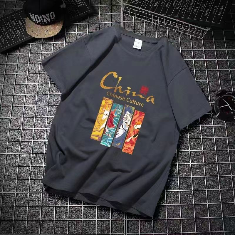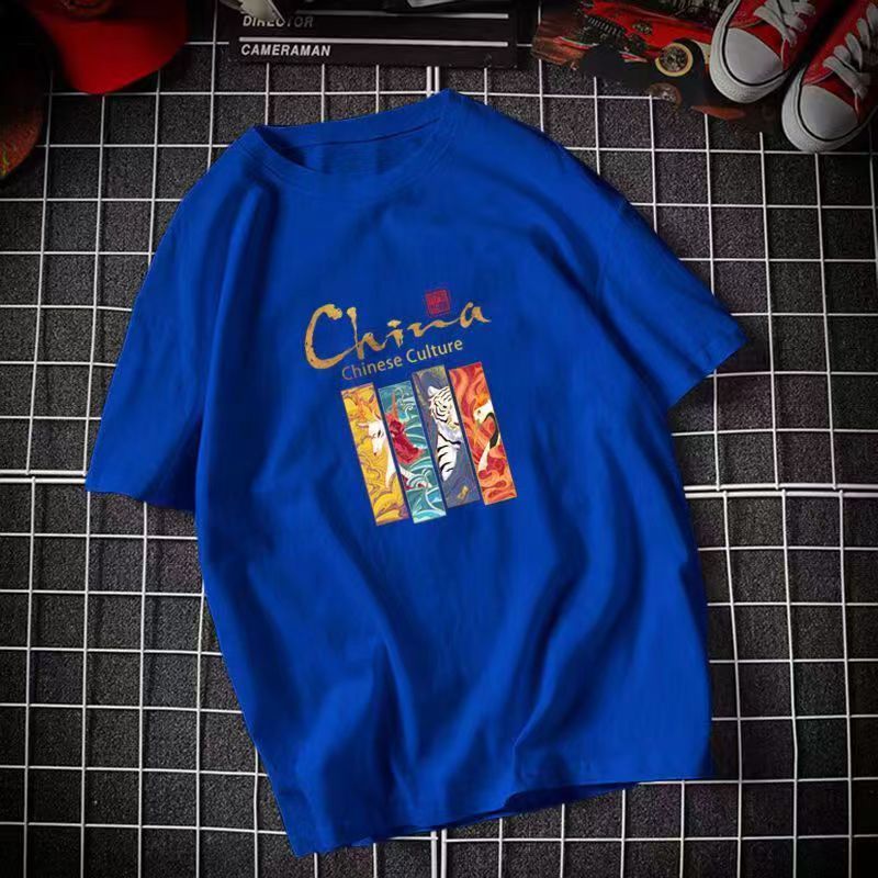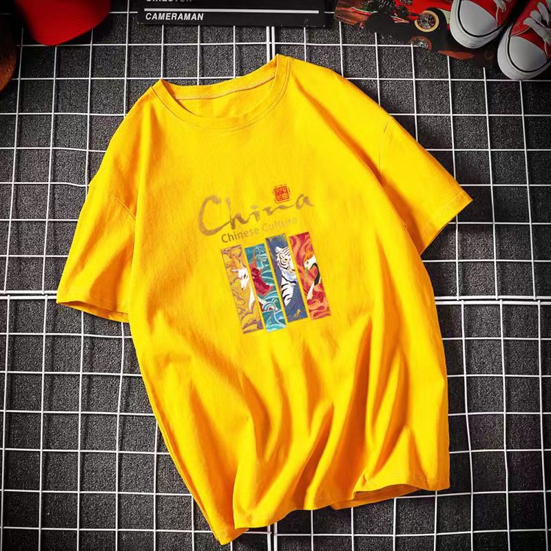 국가 동향 티셔츠 남성 반팔 여름 2025 새로운 중국 스타일 남성 티셔츠 순수 코튼 느슨한 대형 유행 브랜드 티셔츠스토어 가기