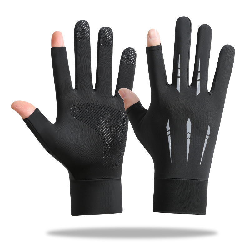 남성용 아이스 실크 장갑, 두 손가락 노출, 미끄럼 방지, 테이크아웃, 라이딩, 자외선 차단, 여성용 통기성, 속건성, 여행, 등산, 운전, 야외 활동용 A4