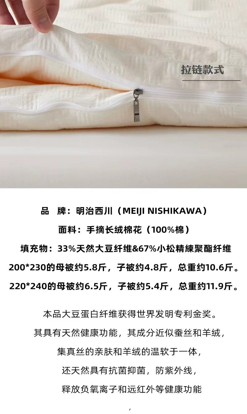 메이지 니시카와 대두 섬유 이불 순면 봄 가을 이불 두꺼운 마더 겨울 이불 투인원 코어 순면 여름 이불