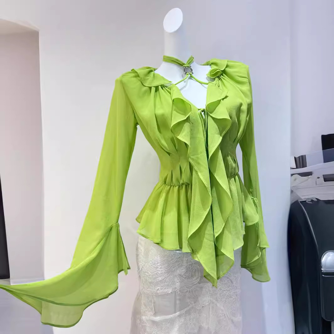 같은 셔츠 휴가 바람 쉬폰 레이스 카디건 제조 업체 헤어 스타일을 넘어 13 라인 2024 여름 새로운 양