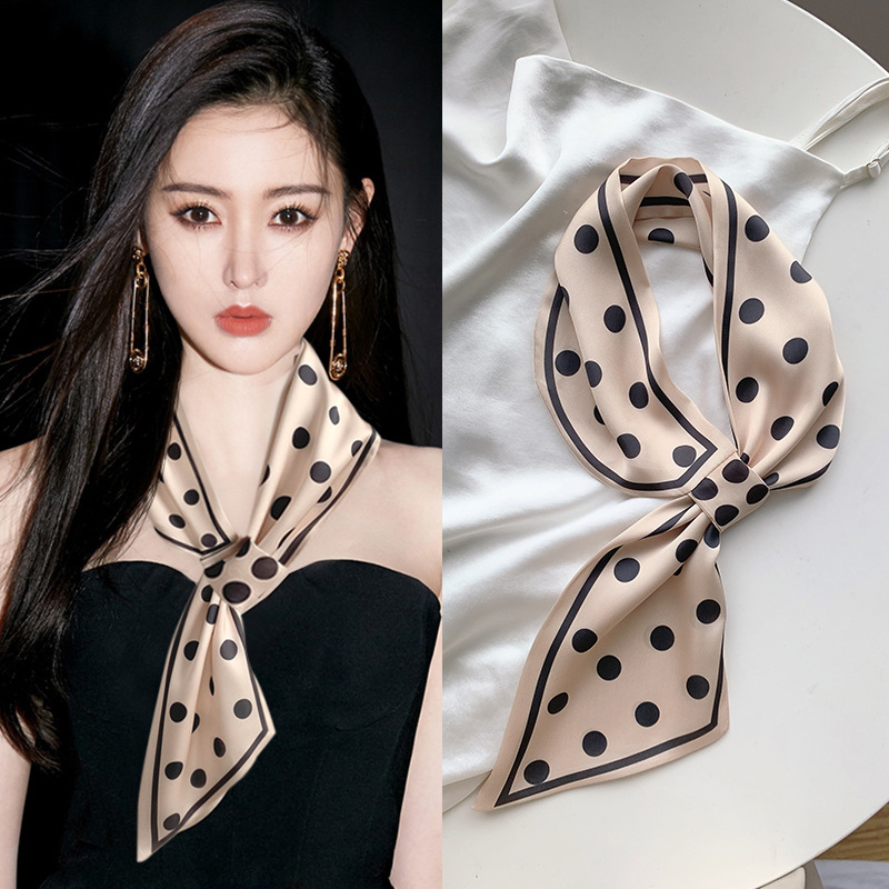 봄 새로운 별 패션 모든 일치 투표 도트 긴 작은 스카프 외부 세트 셔츠 여성용 좁은 스카프