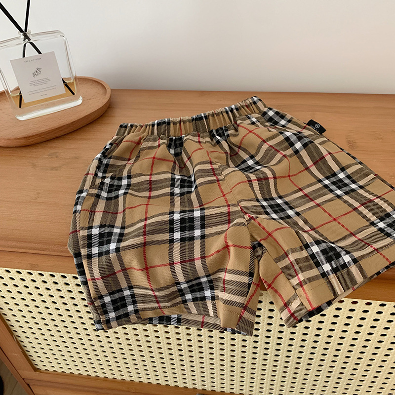 Tong Chenchen Mom Boys 'Vorts 얇은 외부 착용 서양식 어린이 아기 격자 무늬 바지 올 매치 캐주얼 반바지 트렌디 한 한국 스타일스토어 가기