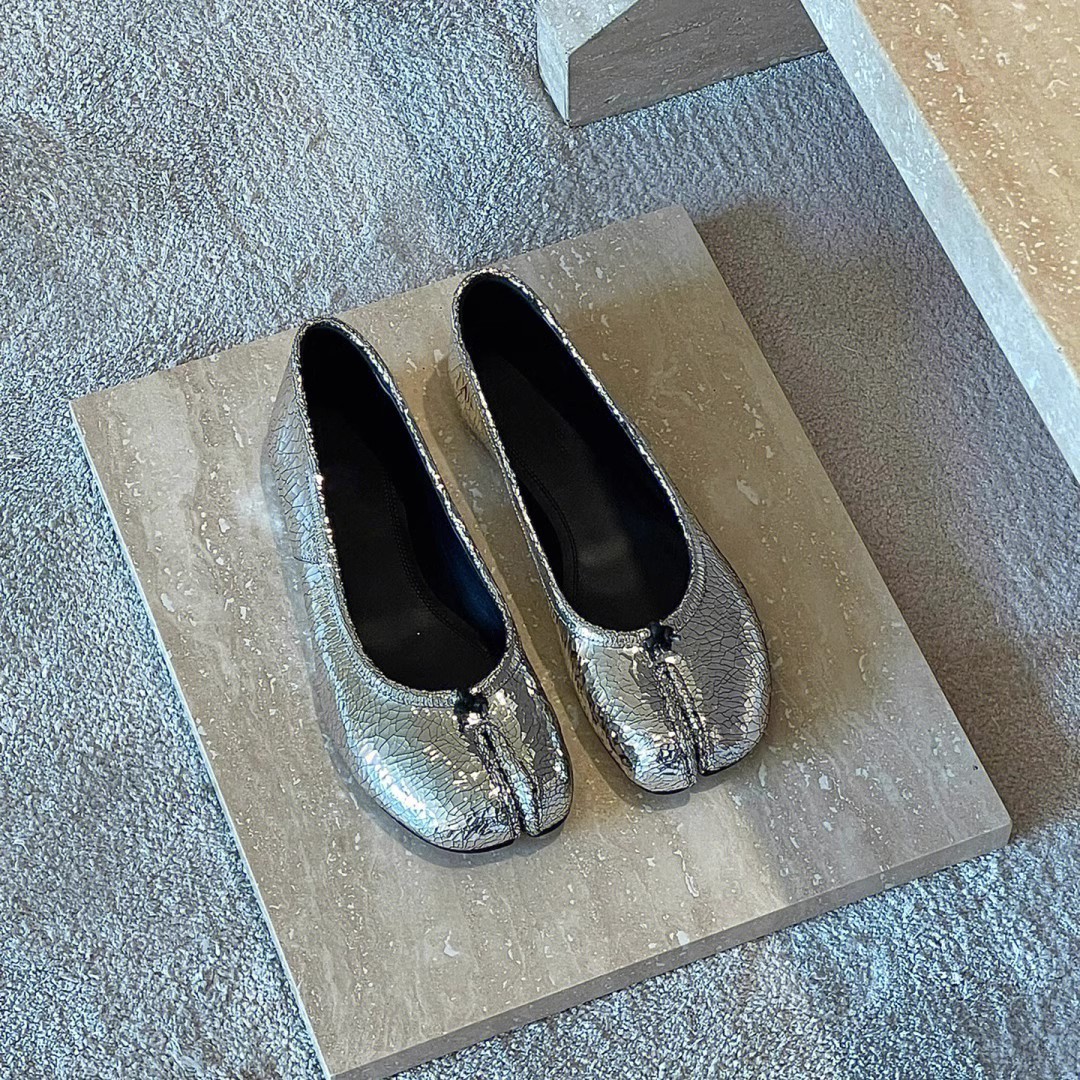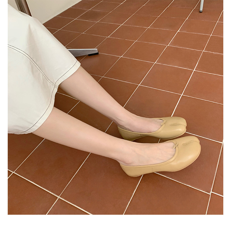돼지의 트로터 신발 소가죽 분할 발가락 신발 여성용 여름 플랫 얕은 입 싱글 신발 발레 말굽 신발 Asigo 같은 스타일 슬립온스토어 가기