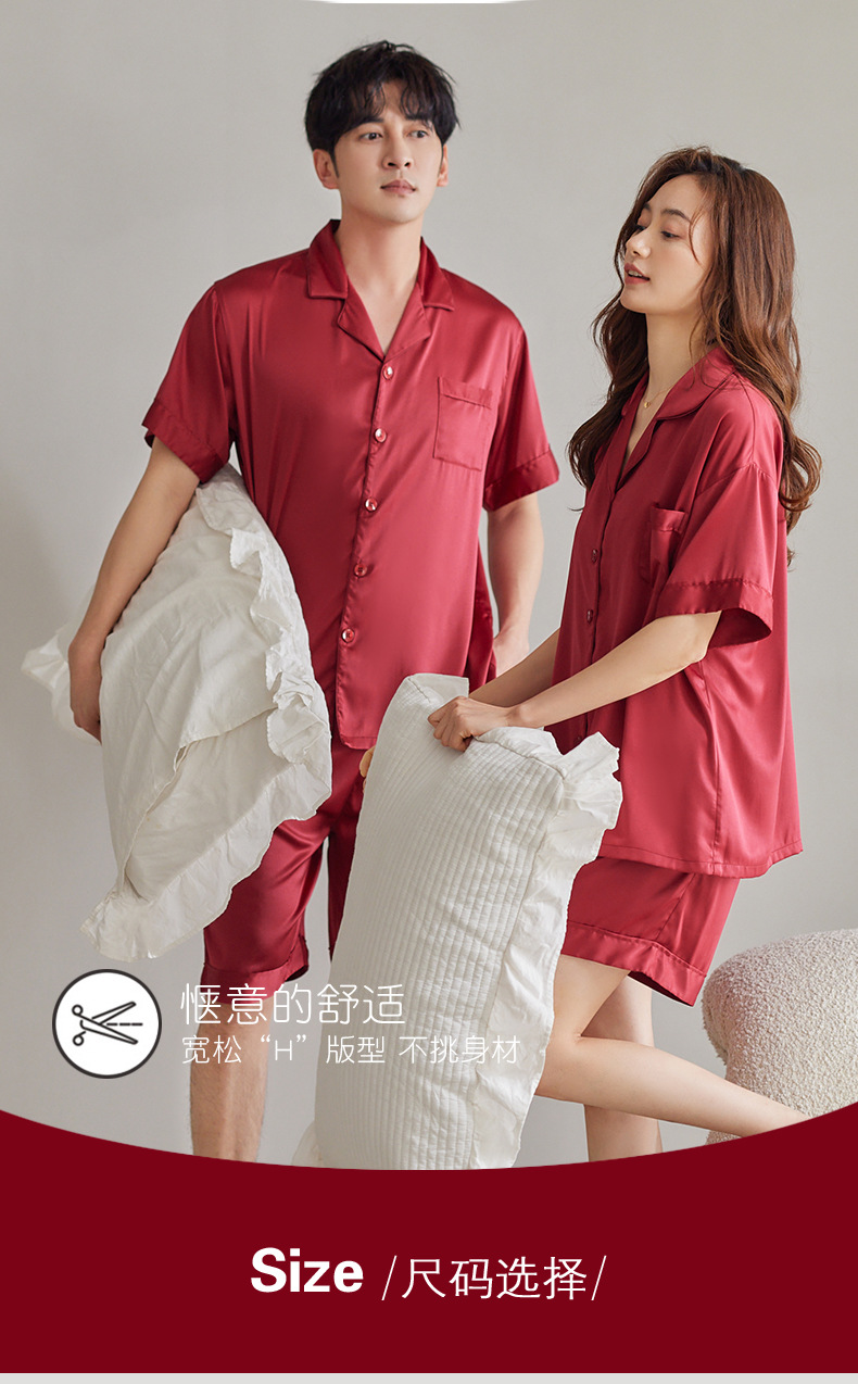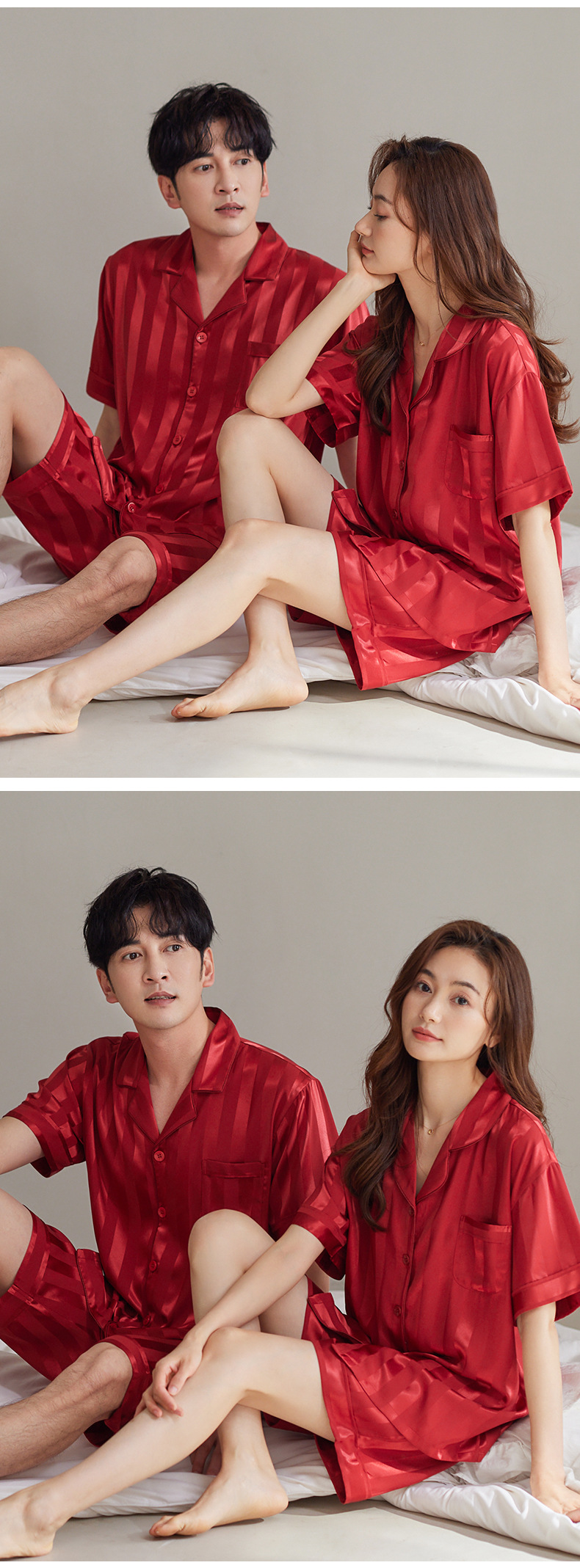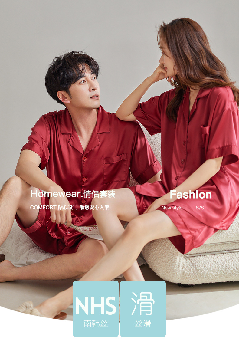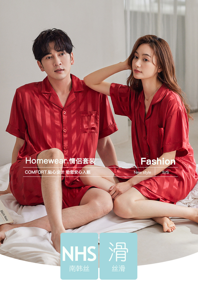 잠옷 여자의 여름 얼음 실크 얇은 반팔 빨간 남자의 커플 결혼식 신혼 가정 옷 세트 결혼 선물스토어 가기