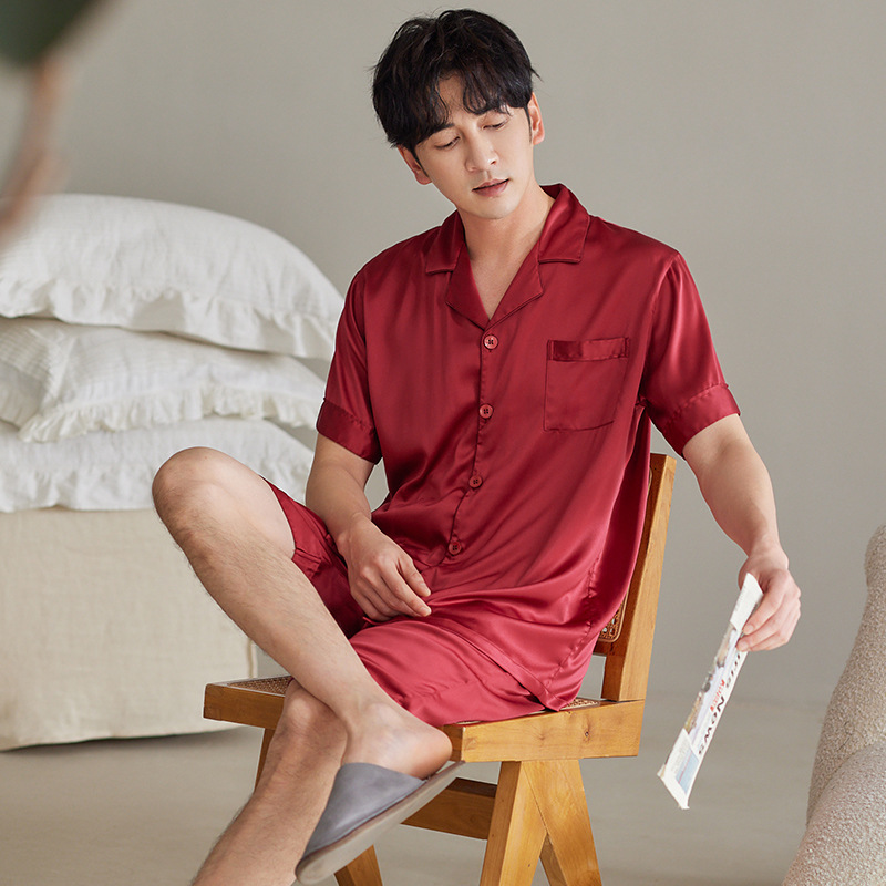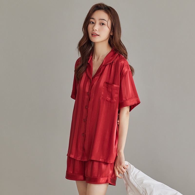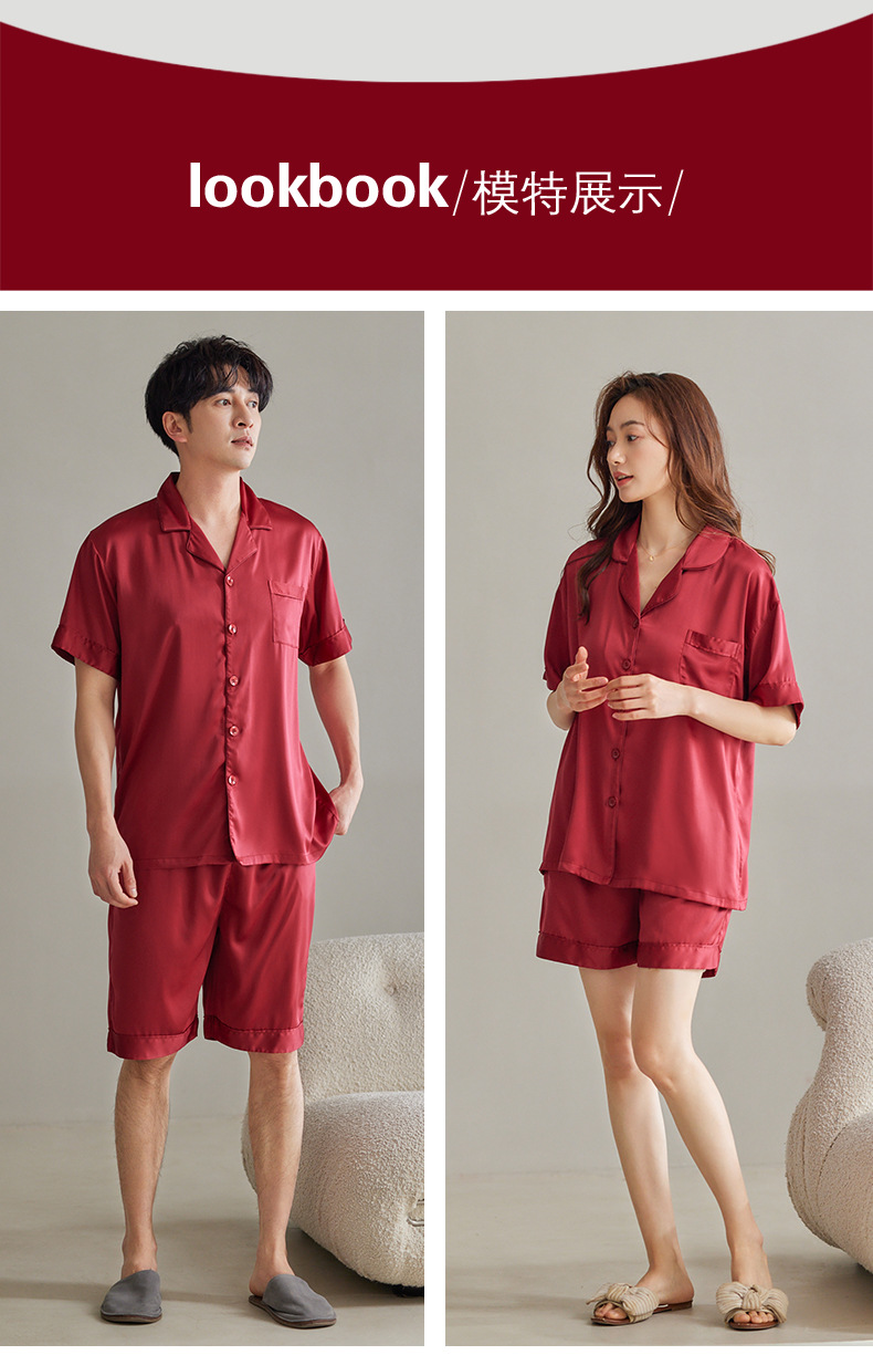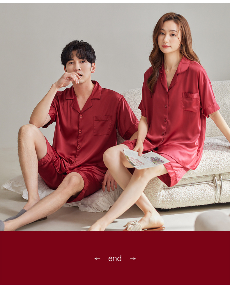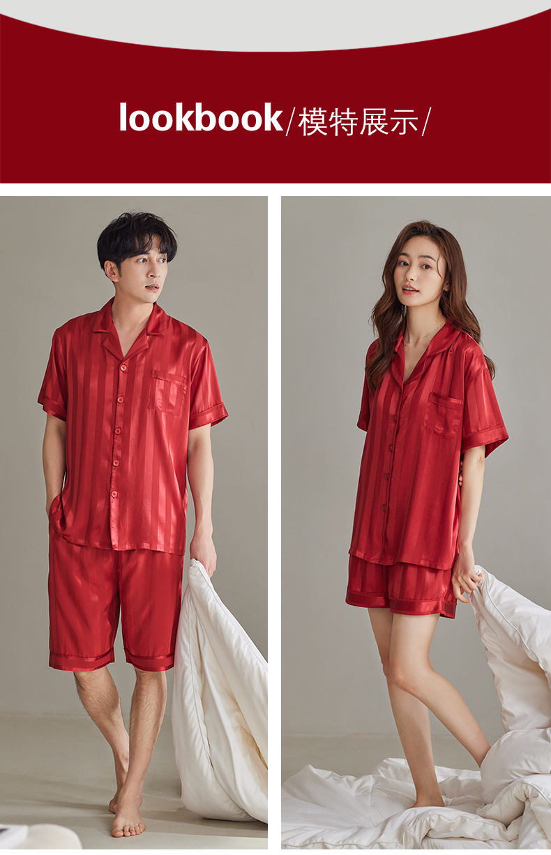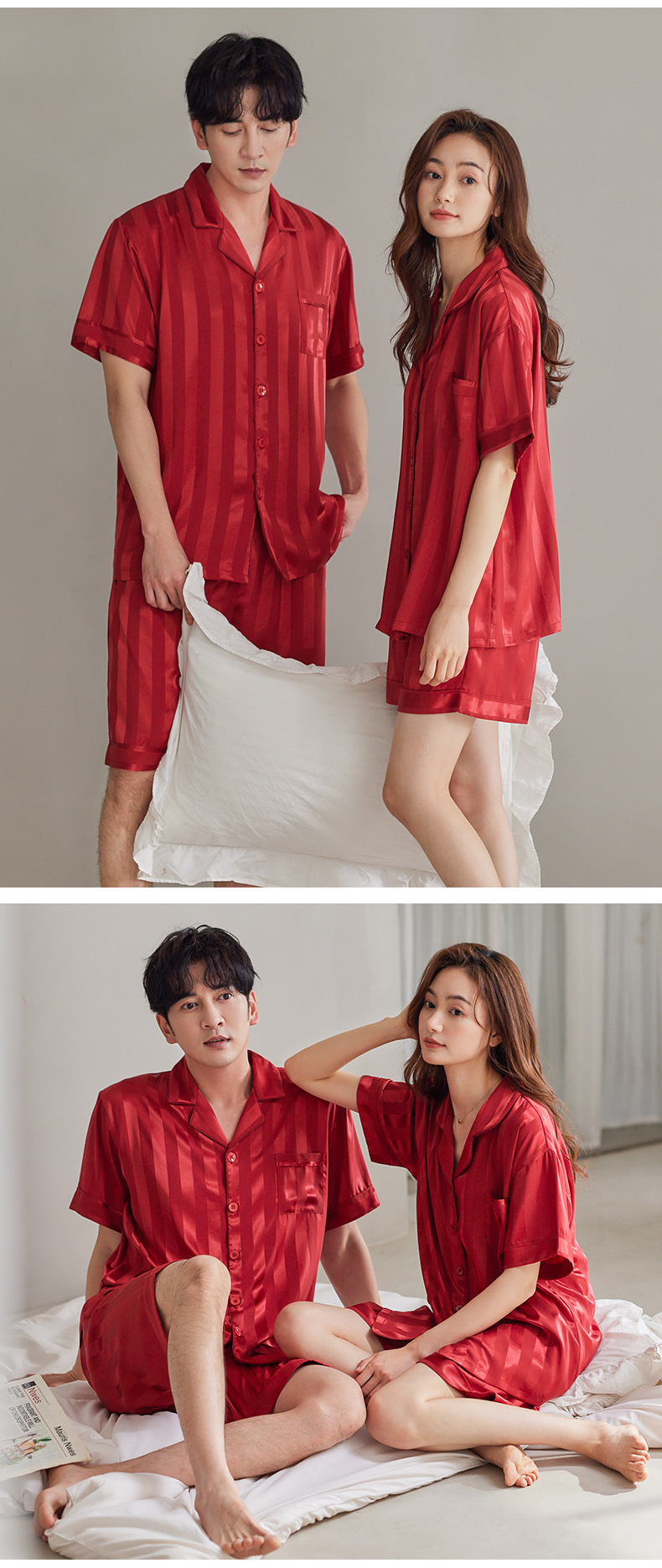 잠옷 여자의 여름 얼음 실크 얇은 반팔 빨간 남자의 커플 결혼식 신혼 가정 옷 세트 결혼 선물스토어 가기