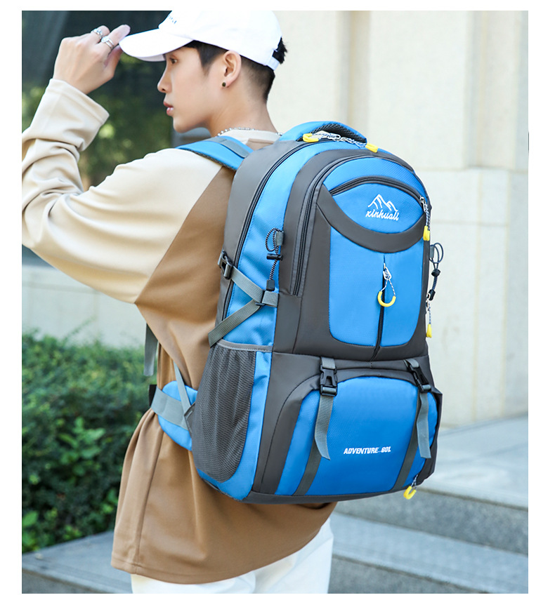야외 등산 가방 하이킹 남성과 여성 60L 대용량 배낭 패션 캐주얼 여행 배낭 경량 스포츠 가방