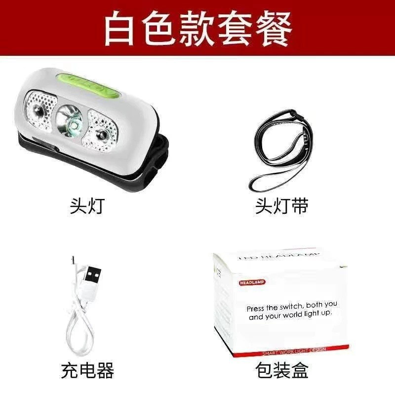 Usb 충전식 낚시 헤드 라이트 led 강한 빛 흔들기 유도 헤드 마운트 야외 캠핑 조명 방수 도매