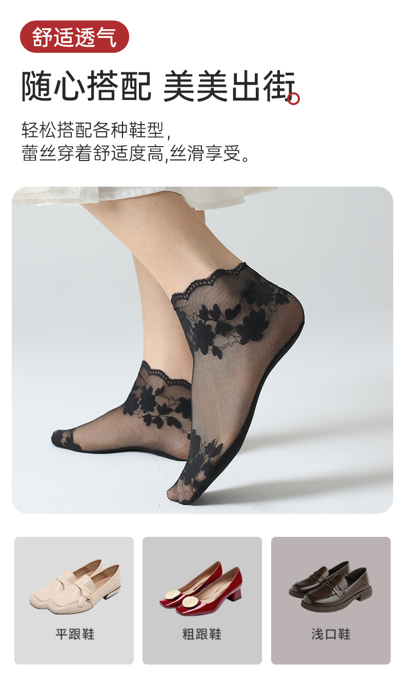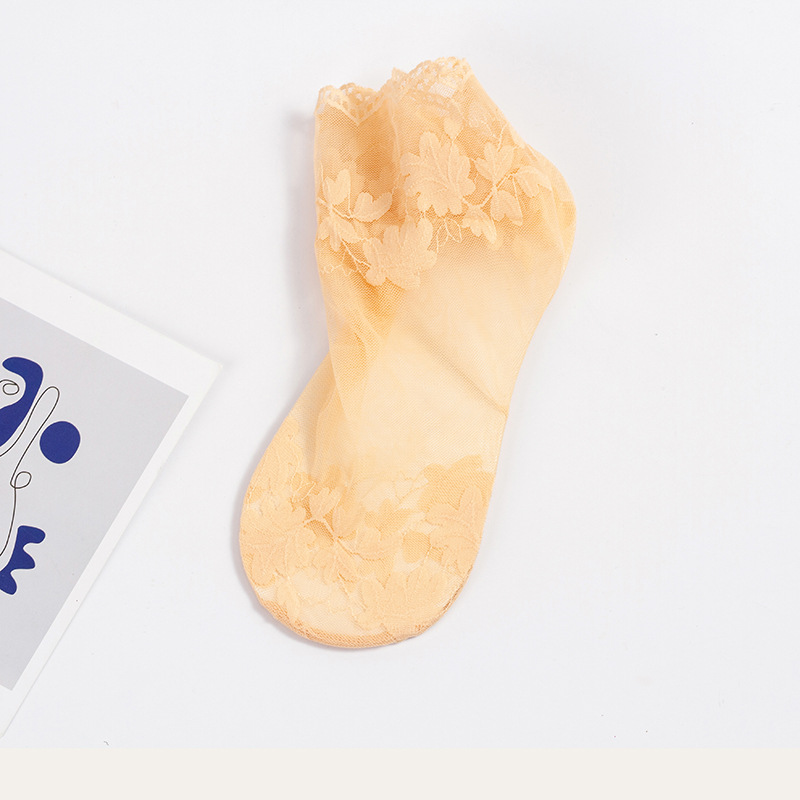 여성용 여름 얇은 레이스 양말 면바닥 여성용 짧은 양말 중간 길이 양말 통기성 미끄럼 방지 메쉬 양말
