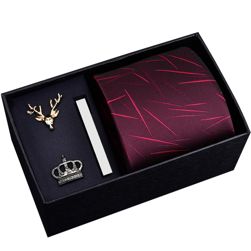 선물 상자] 남자의 비즈니스 정장 8cm 손 넥타이 넥타이 검은 매듭 브로치 넥타이 클립 5 세트
