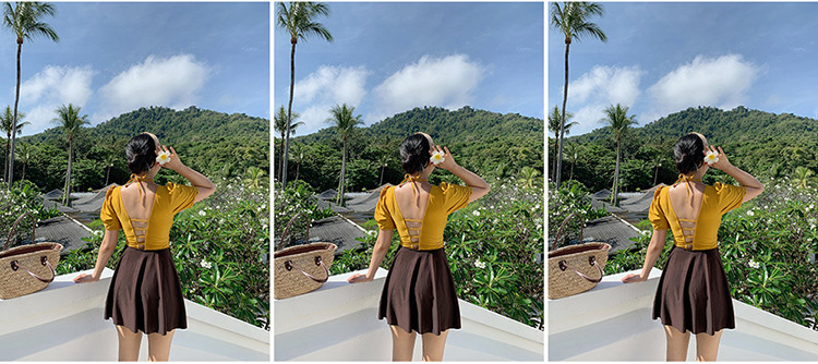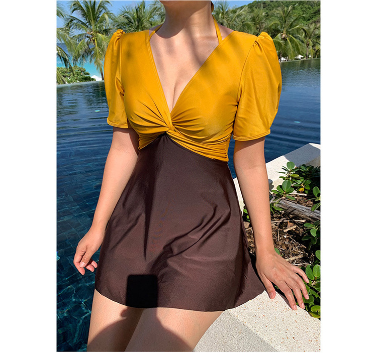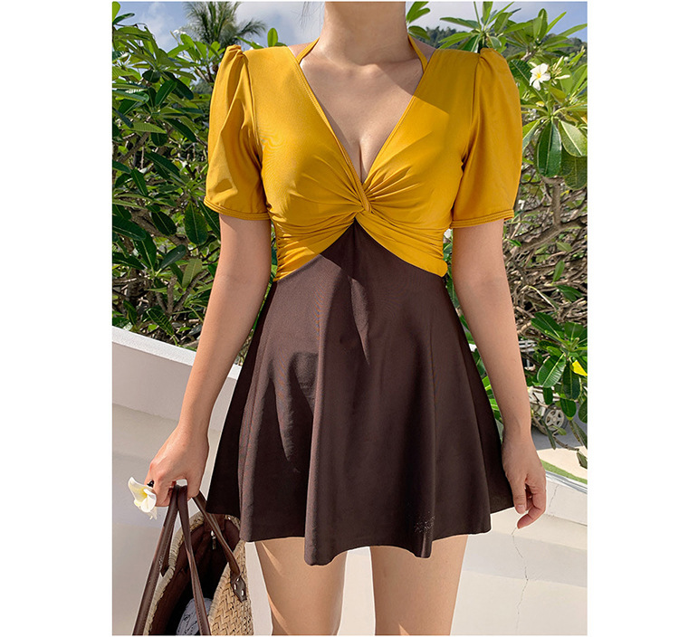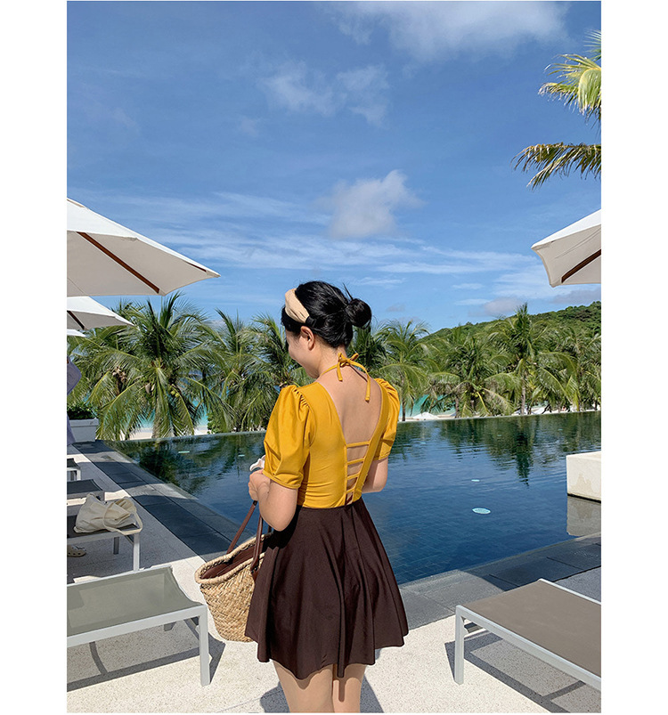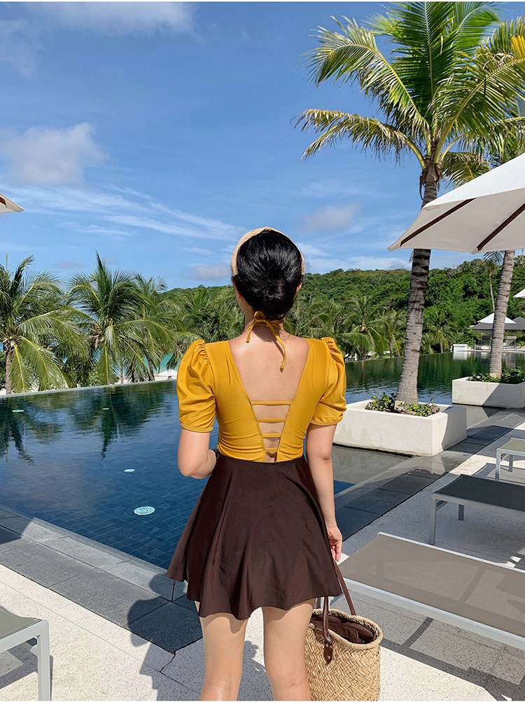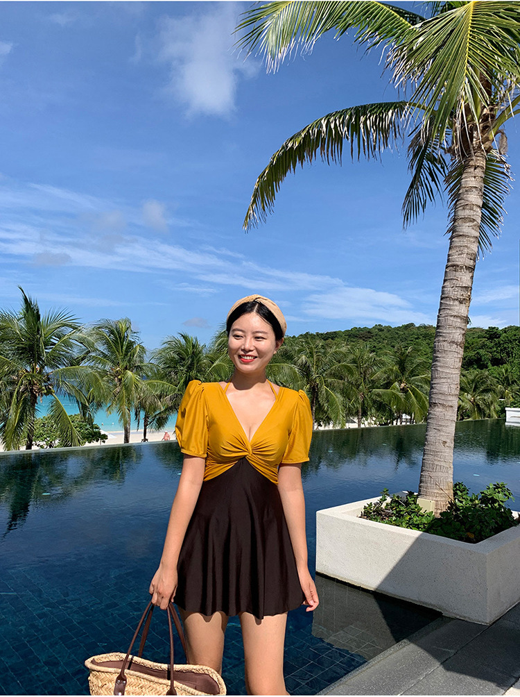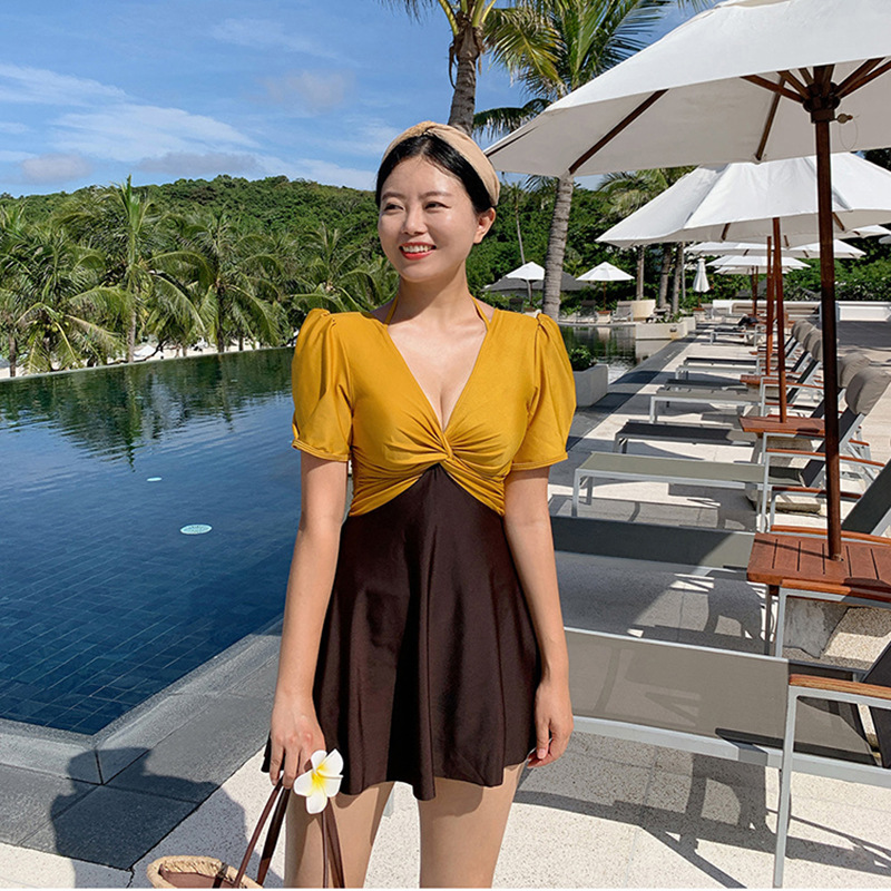 한국 2023 새로운 수영복 여성용 원피스 스커트 살점 덮음 슬리밍 온천 스타일 큰 가슴 강철 브래킷 학생 수영복