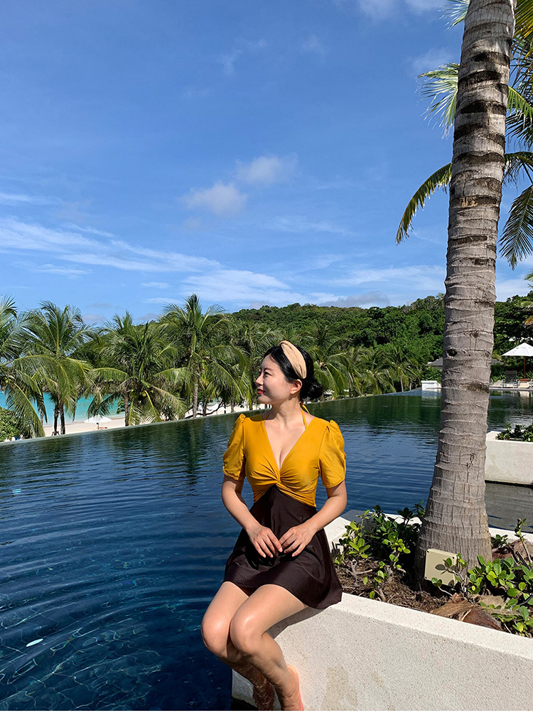 한국 2023 새로운 수영복 여성용 원피스 스커트 살점 덮음 슬리밍 온천 스타일 큰 가슴 강철 브래킷 학생 수영복스토어 가기