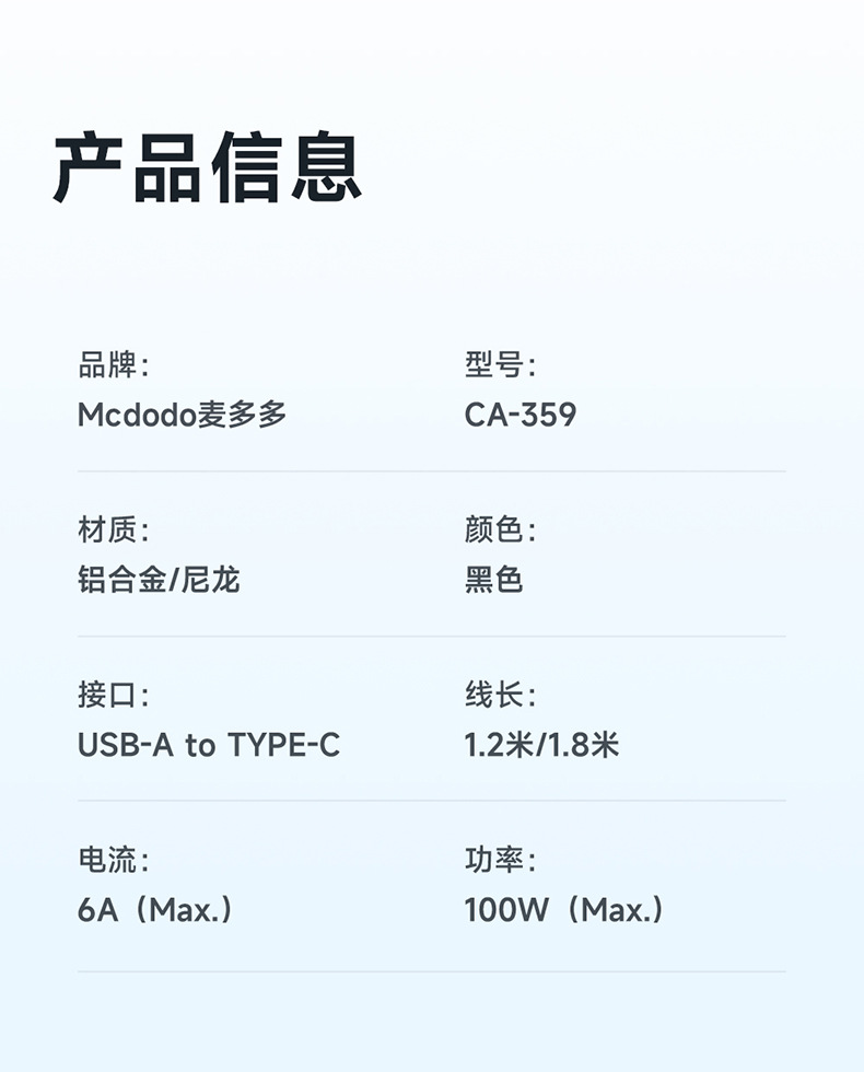 • USB-TYPE-C 6A 인터페이스 1.2m