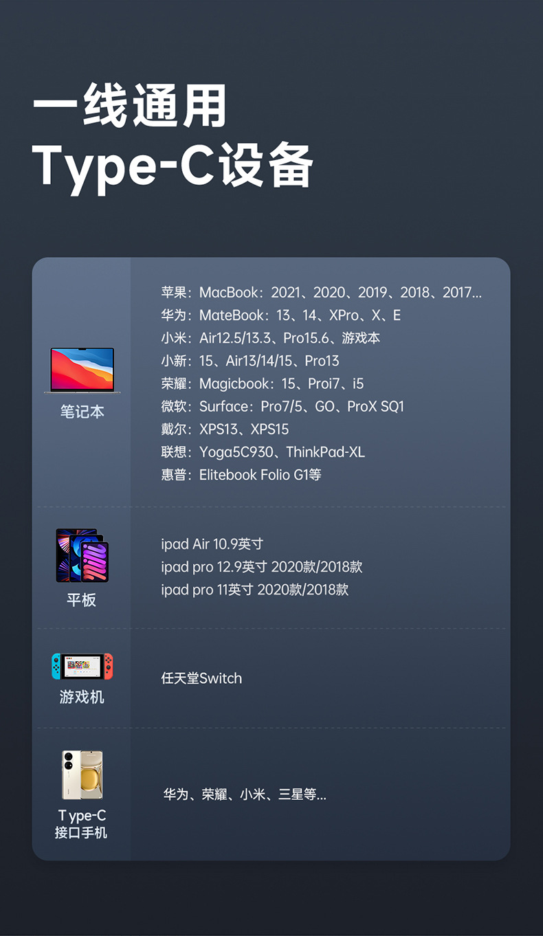 • 유형-C 번개 인터페이스 1.2m