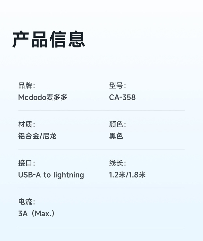 • 유형-C 번개 인터페이스 1.8m