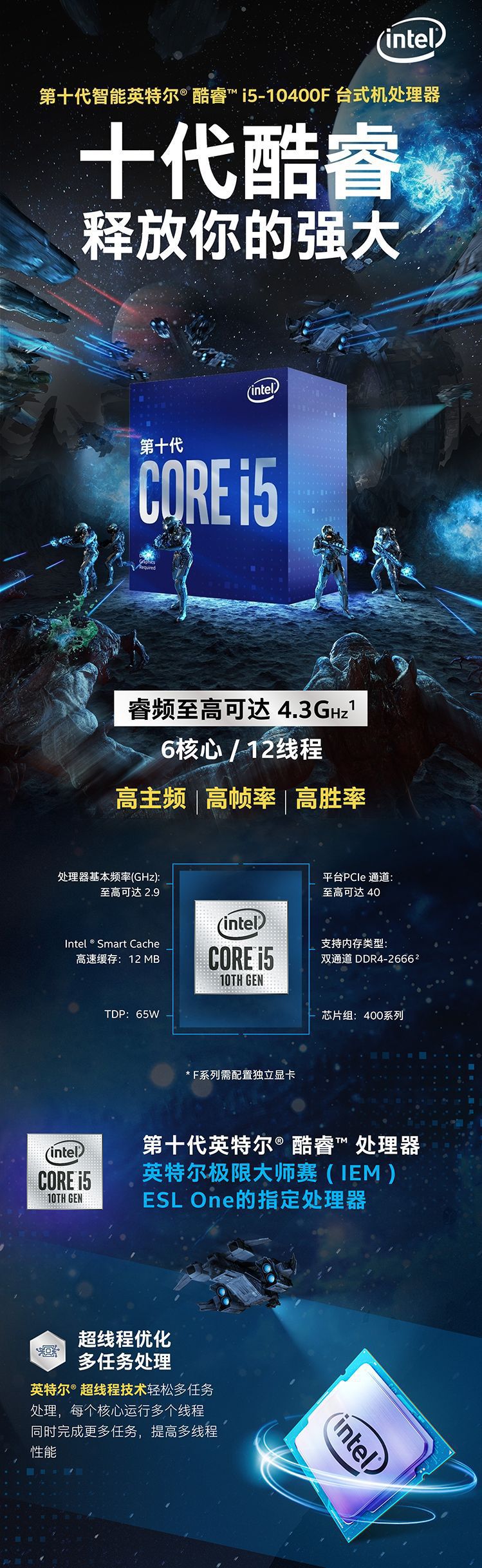 PC용 인텔 10세대 코어 i5-10400F 분해된 칩 고성능 e스포츠 게임용 CPU