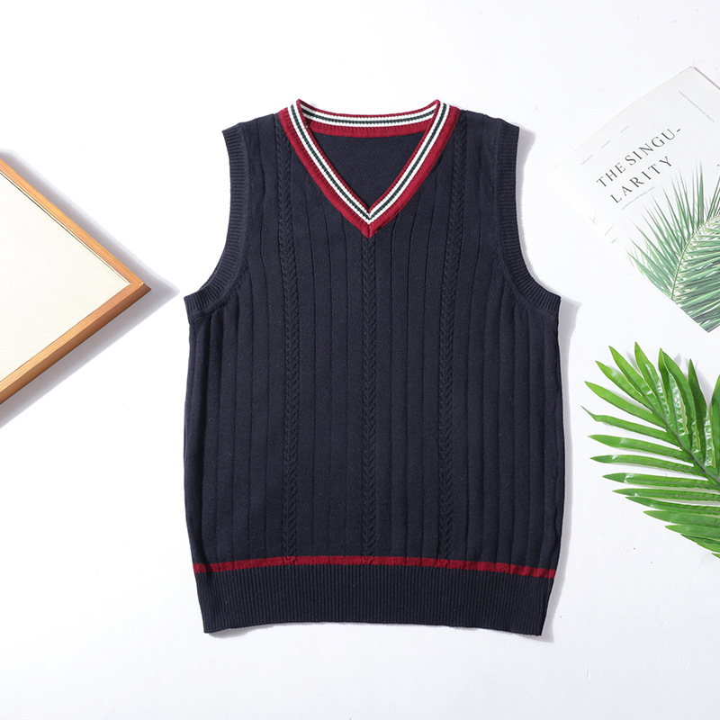 어린이 초등학교 중학교 교복 같은 스타일 소년과 소녀 봄과 가을 스타일 캠퍼스 네이비 대추 조끼스토어 가기