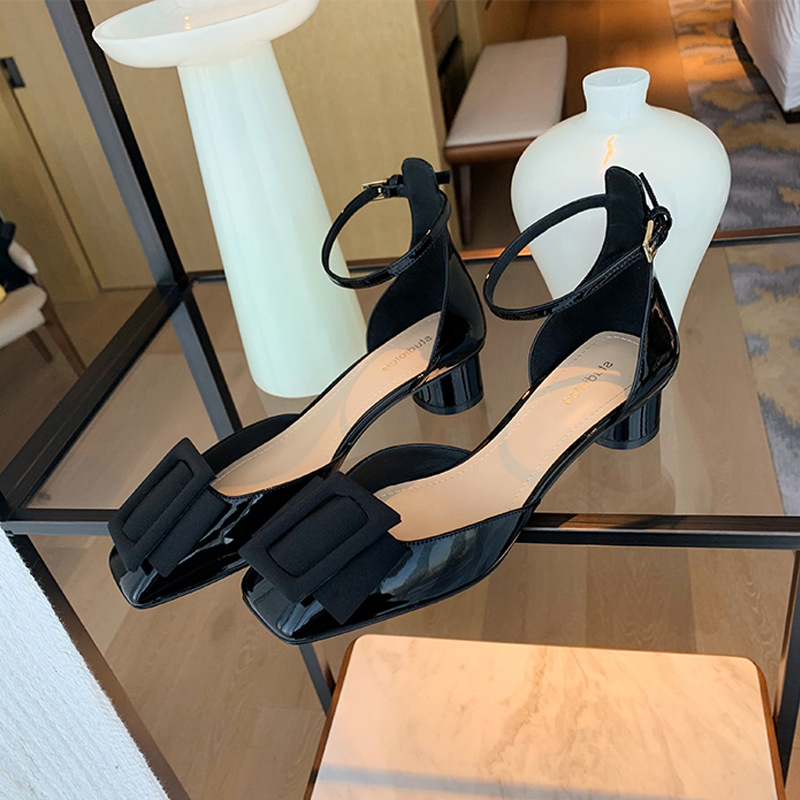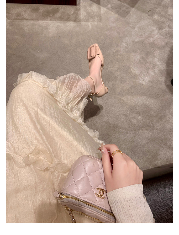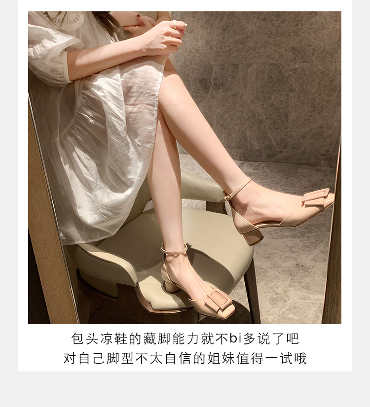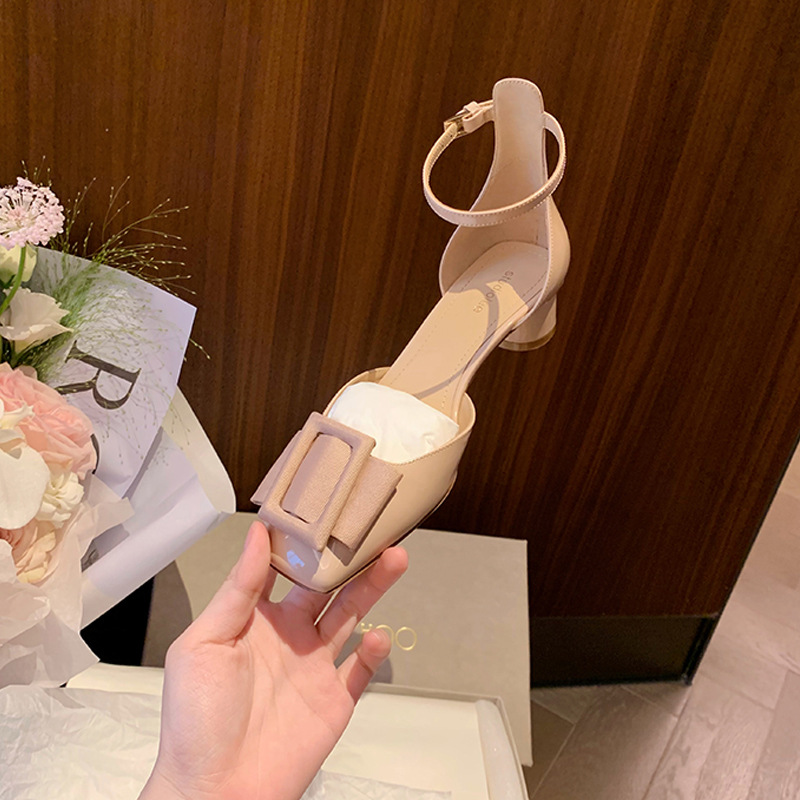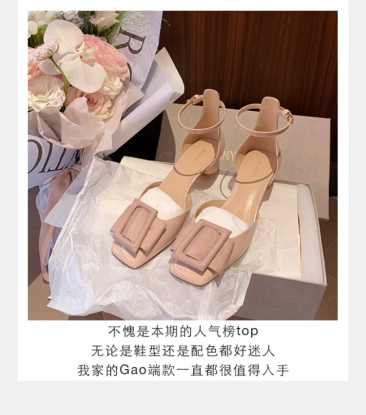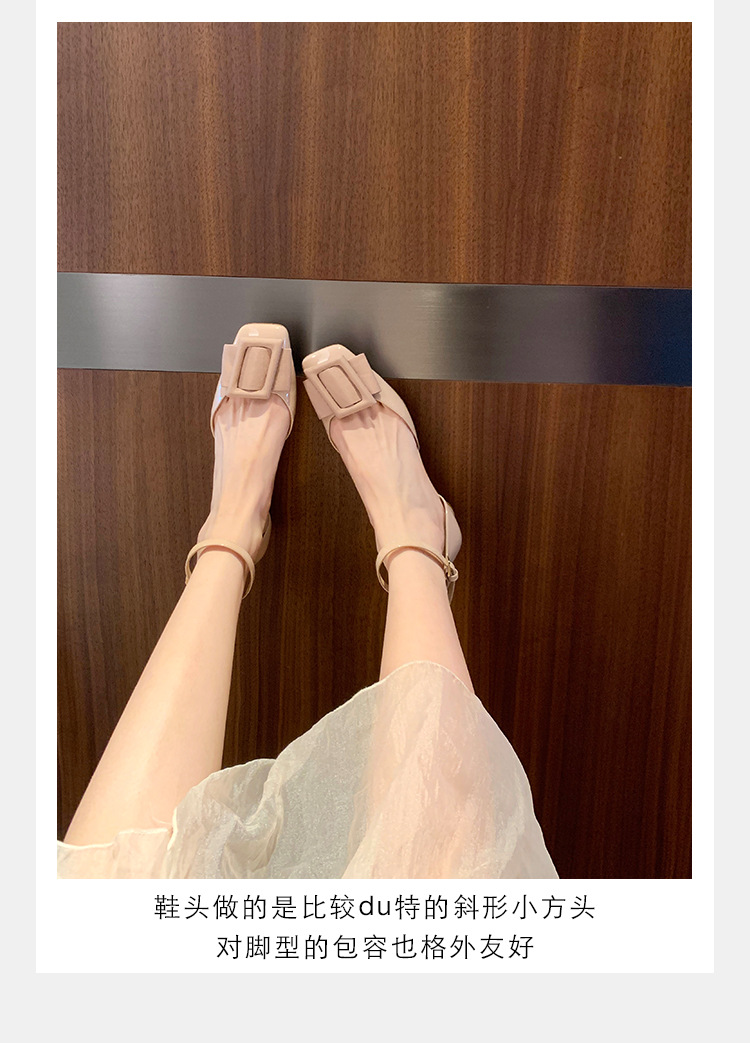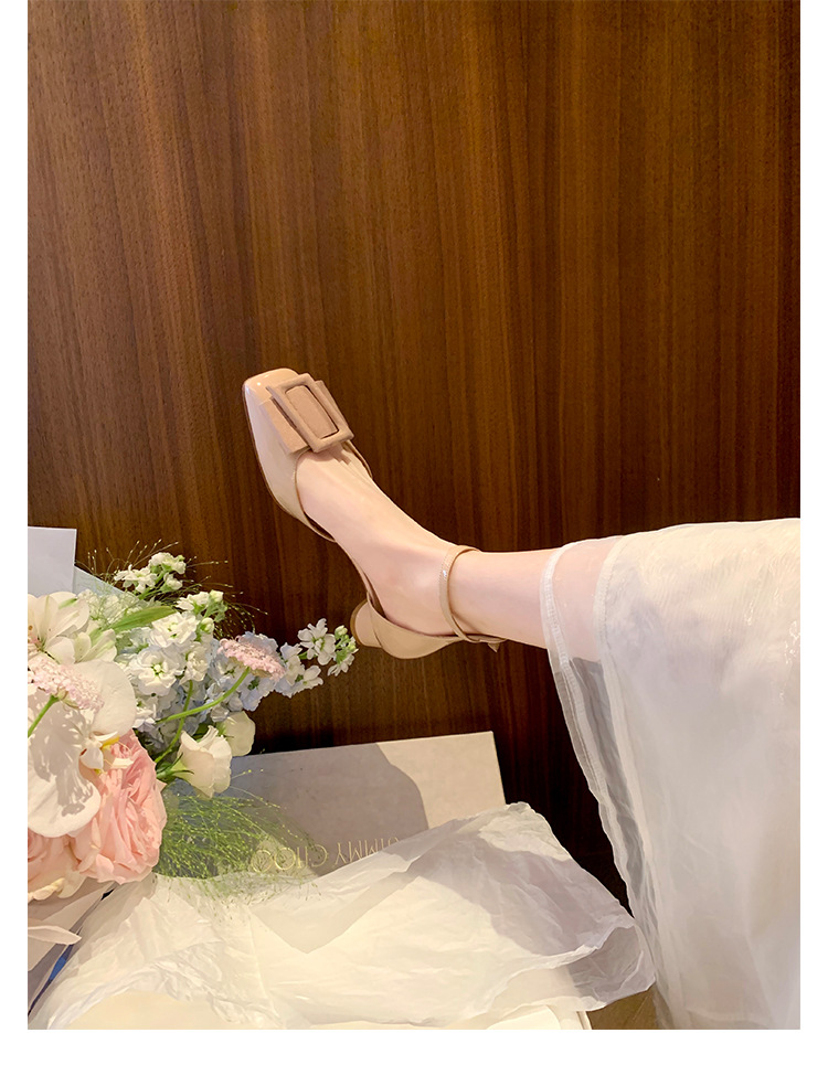 포도색 여름 사각코 스트랩 하이힐, 여성용 중공 디자인, 사선 버클, 얕은 굽 샌들, 여성용 만능 스타일, 달콤한 소녀 스타일