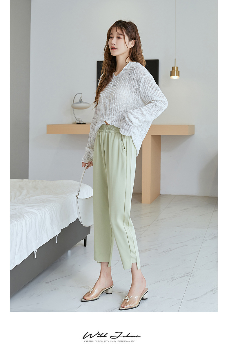 세트 무 바지 여자의 봄과 여름 9 파이프 바지 플러스 사이즈 200kg 통통녀 높은 허리 슬림 피트 Harlan 바지스토어 가기