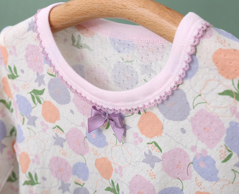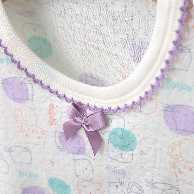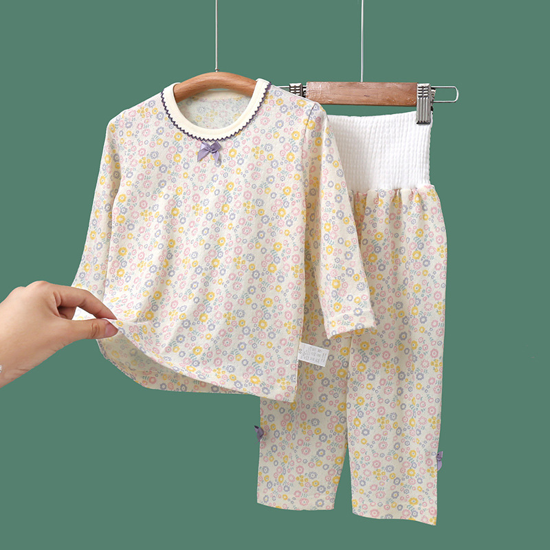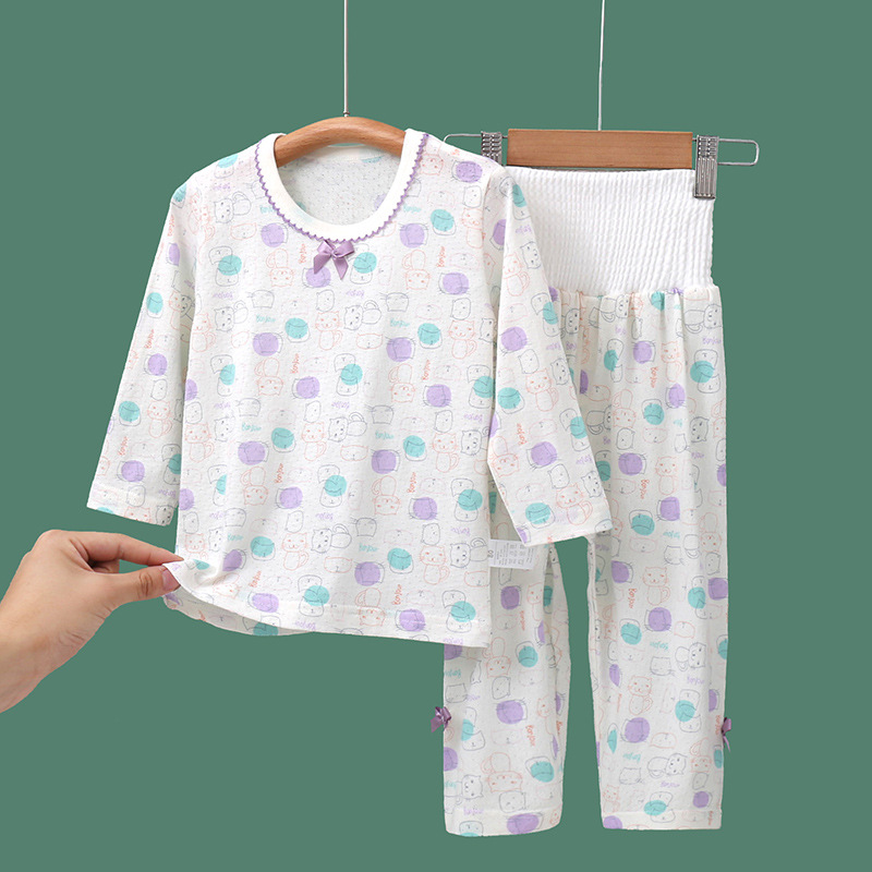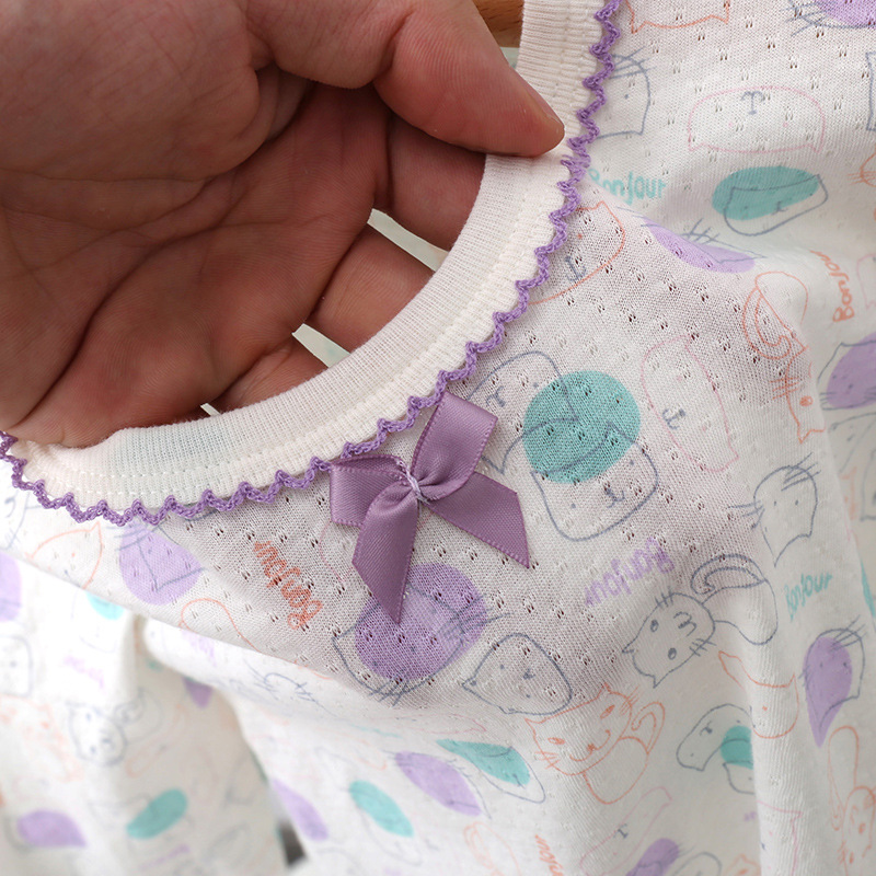 봄과 여름 얇은 어린이 가정 옷 세트 순면 클래스 긴 소매 잠옷 소녀와 아기 머리카락을위한 에어컨 의류