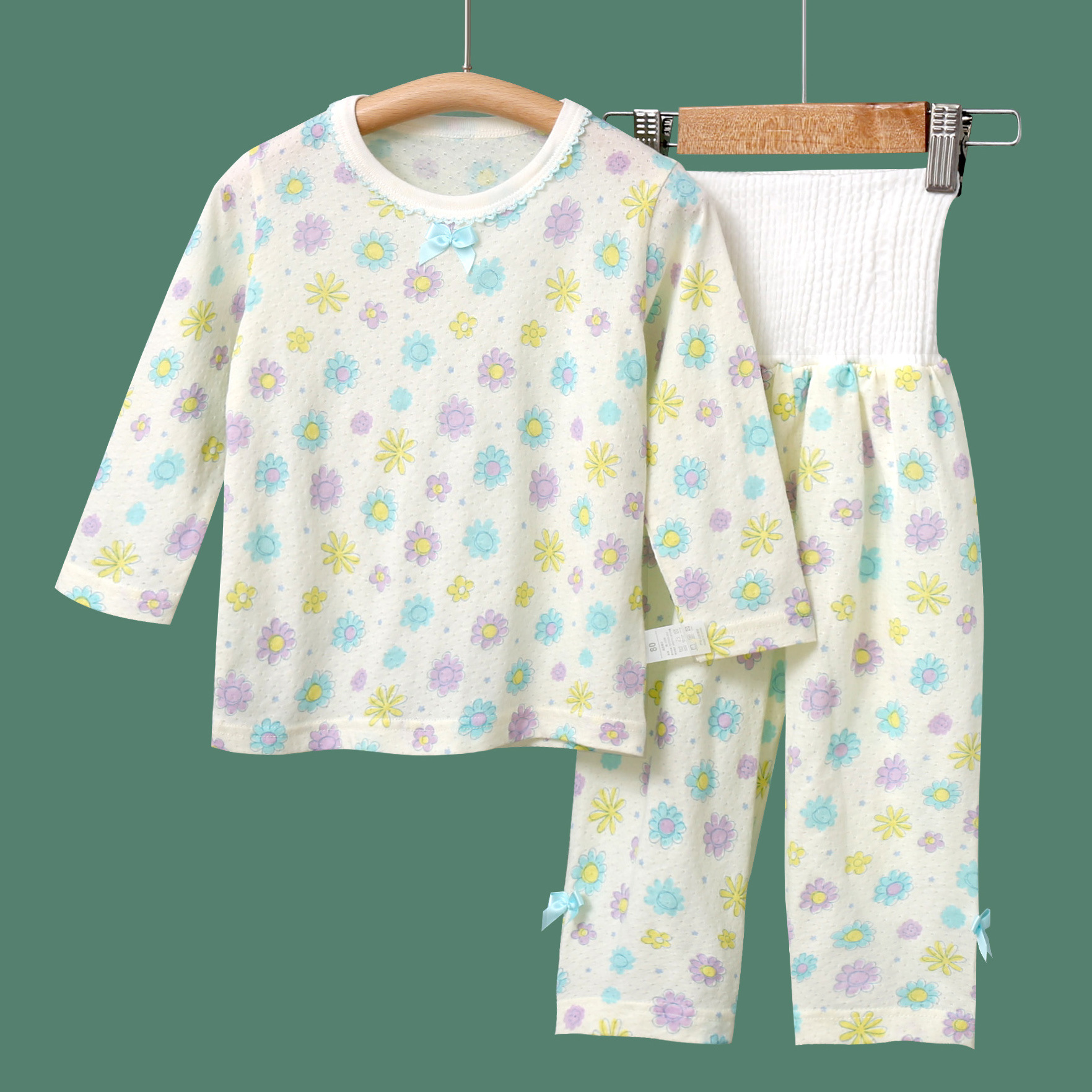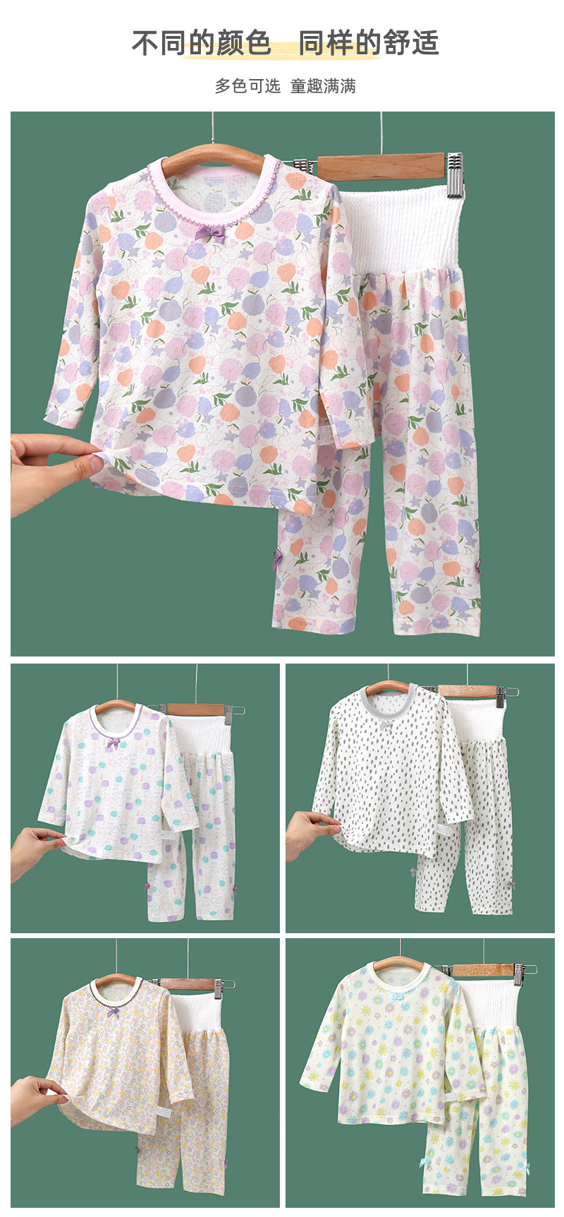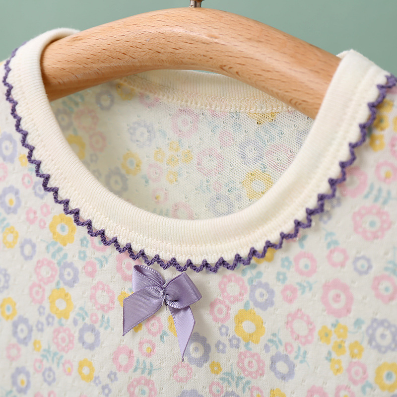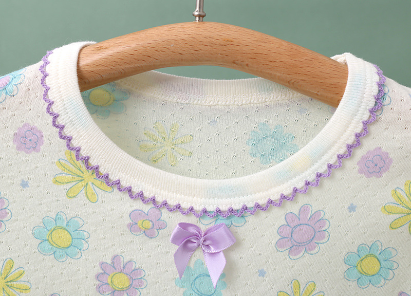 봄과 여름 얇은 어린이 가정 옷 세트 순면 클래스 긴 소매 잠옷 소녀와 아기 머리카락을위한 에어컨 의류