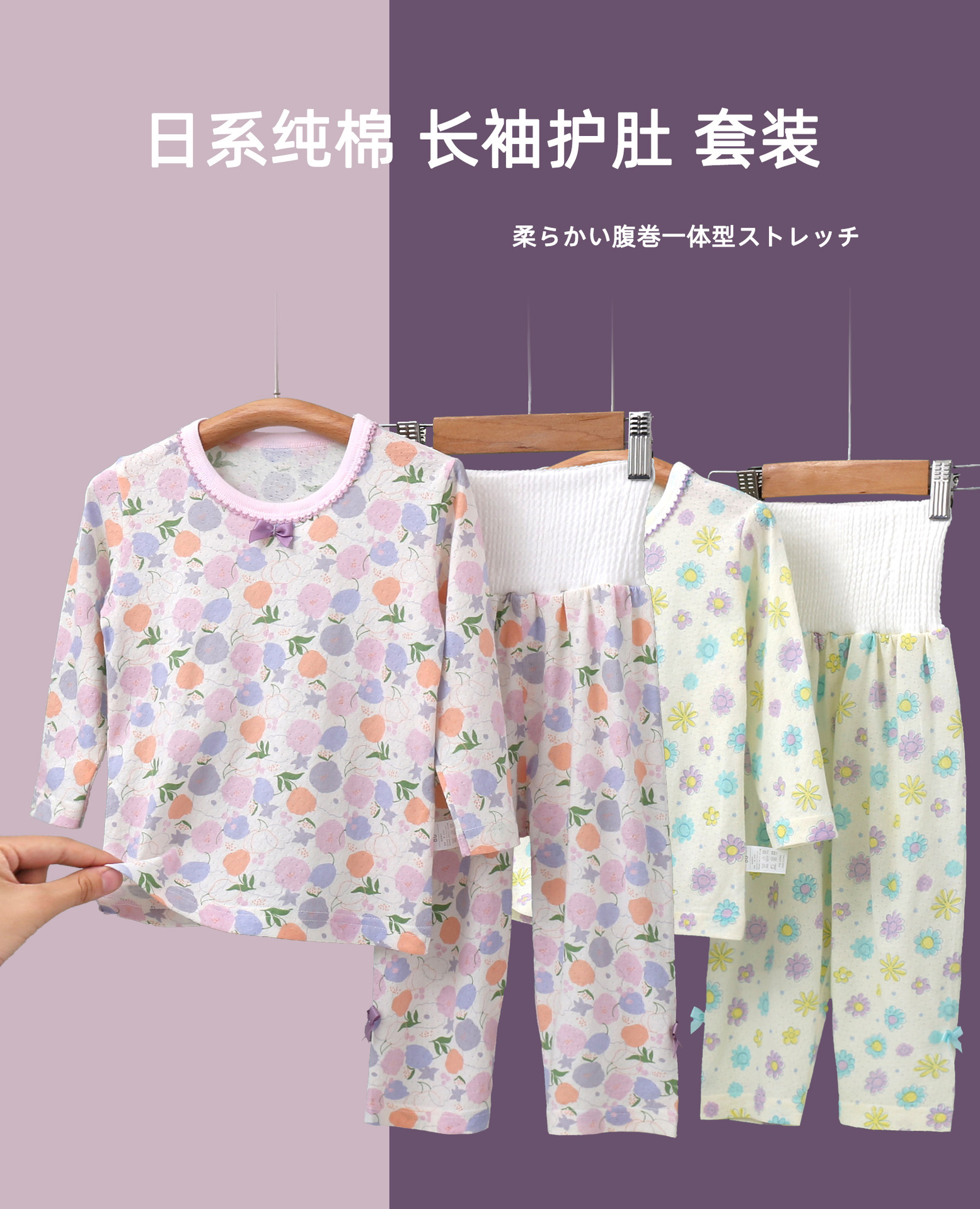봄과 여름 얇은 어린이 가정 옷 세트 순면 클래스 긴 소매 잠옷 소녀와 아기 머리카락을위한 에어컨 의류스토어 가기