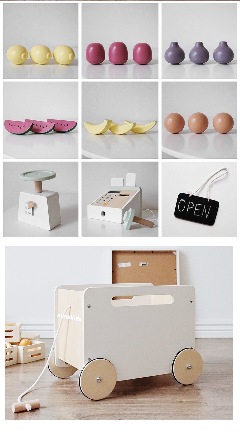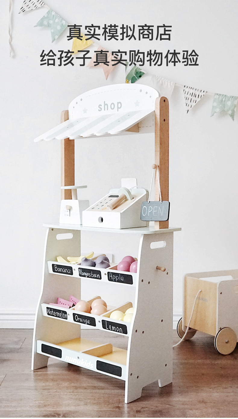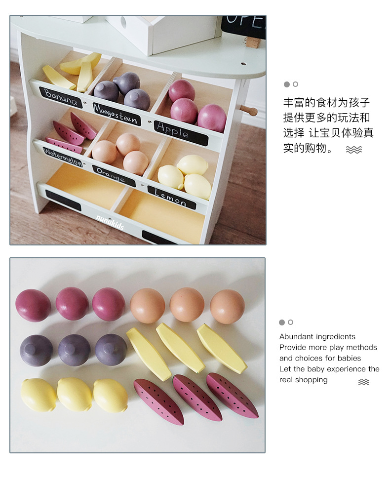 어린이 시뮬레이션 과일 판매 책상 슈퍼마켓 금전 등록기 장난감 플레이 하우스 세트 판매 과일과 야채 매점
