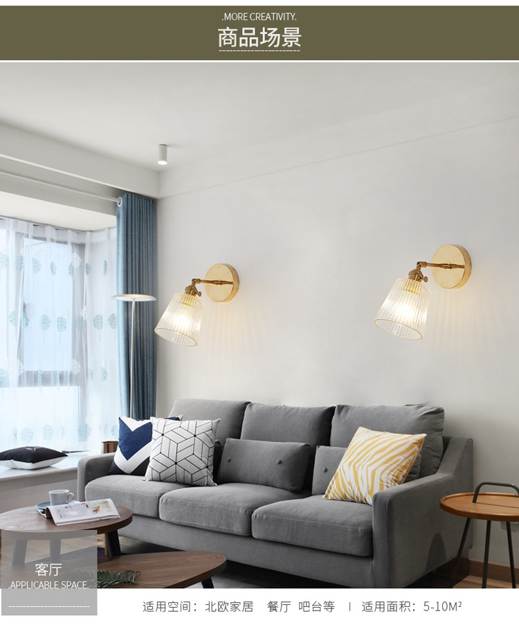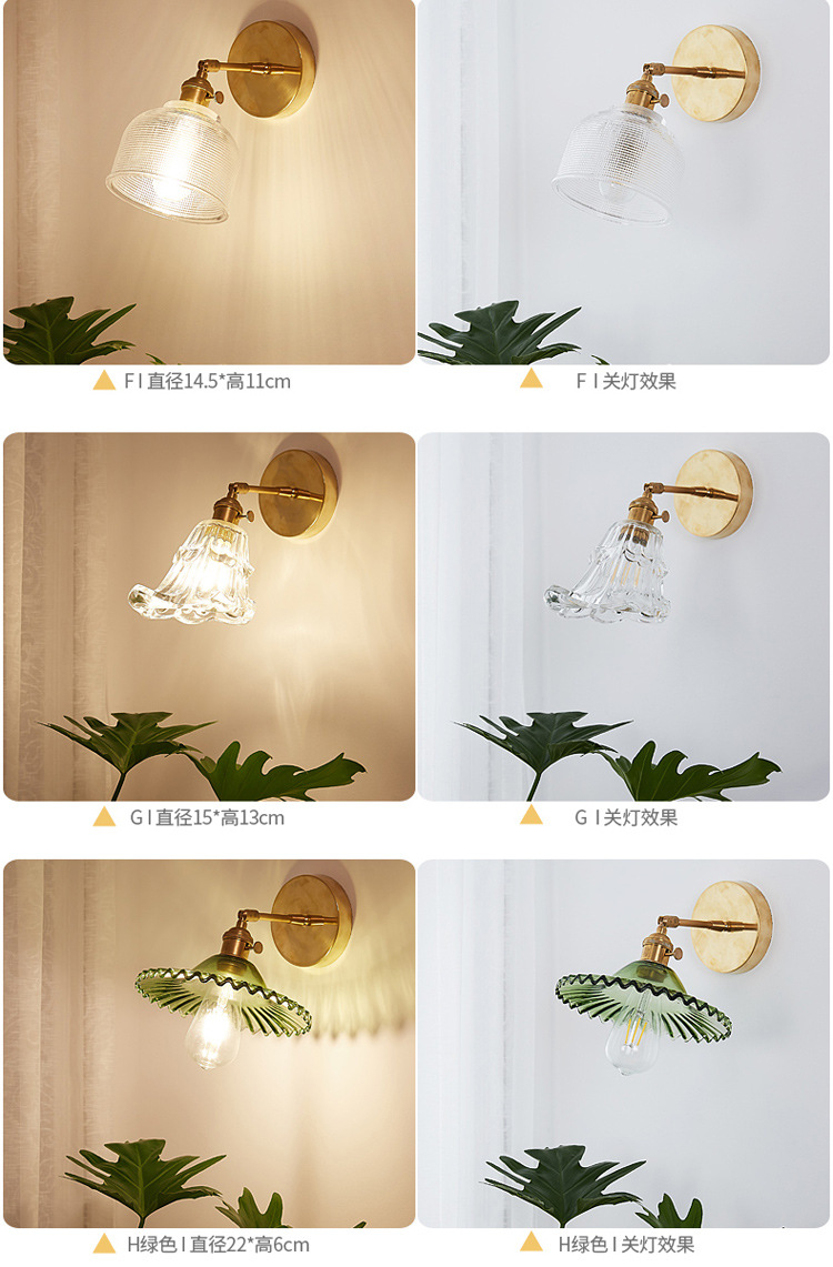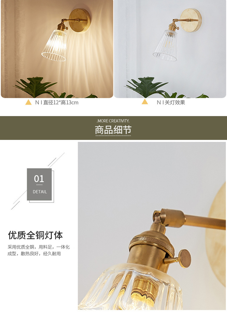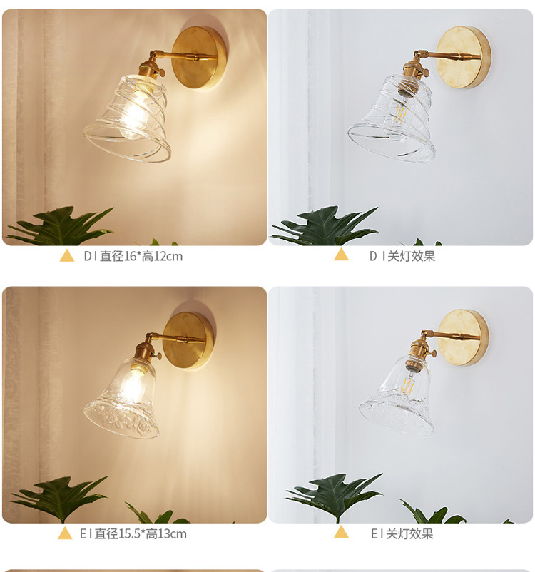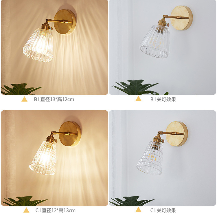 북유럽 황동 침대 옆 벽 램프 일본식 간단한 배경 벽 발코니 욕실 모든 구리 유리 거울 전면 램프스토어 가기
