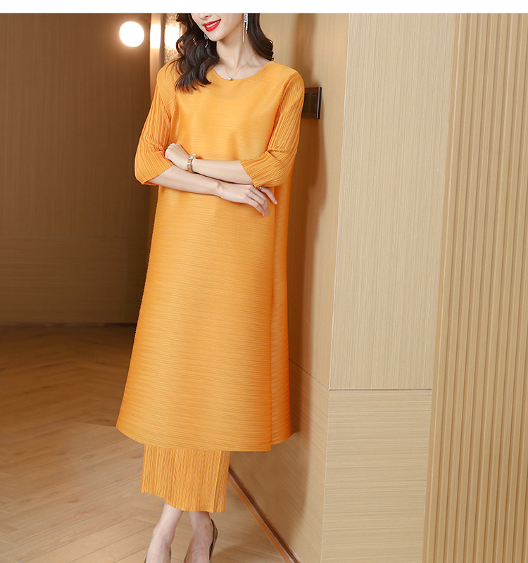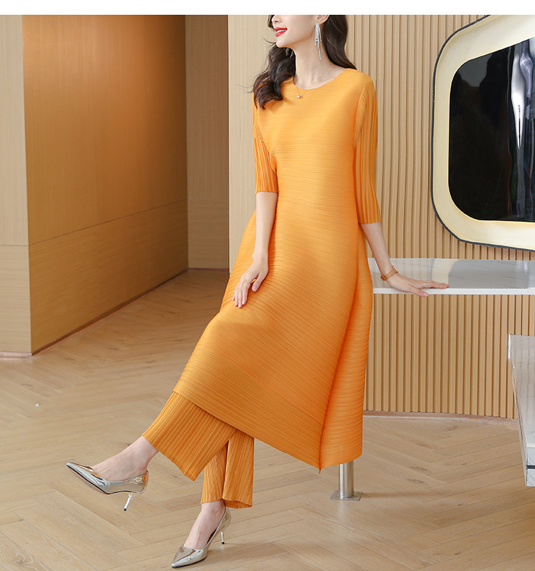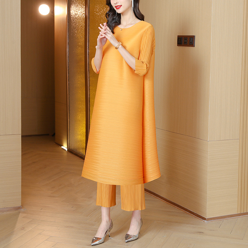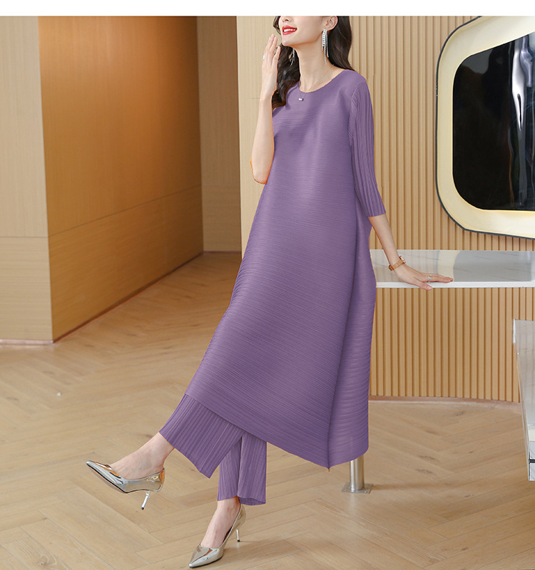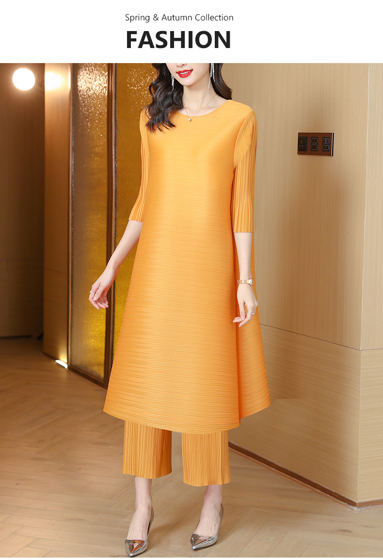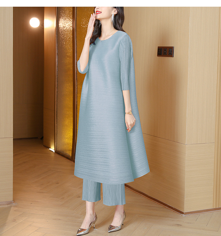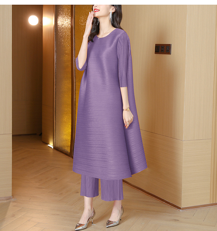 미야케 플리츠 유럽풍 여성 패션 세트, 레트로 엄마 가을옷, 2026년 신상 여성 스타일리쉬 투피스 세트