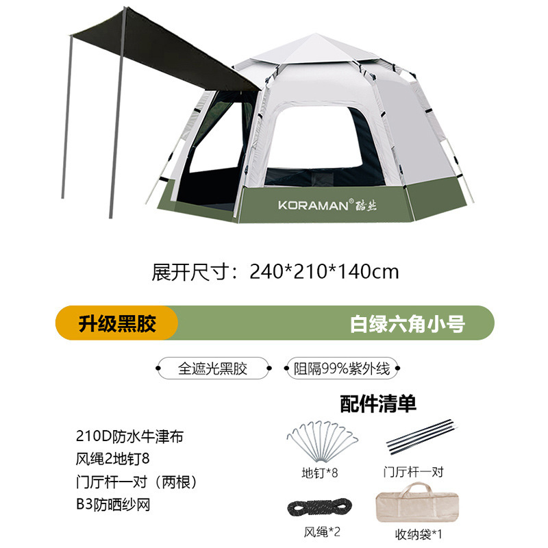 캠핑 텐트 야외 휴대용 캠핑 블랙 접착제 육각 텐트 피크닉 캠핑 자동 텐트 장비 용품스토어 가기