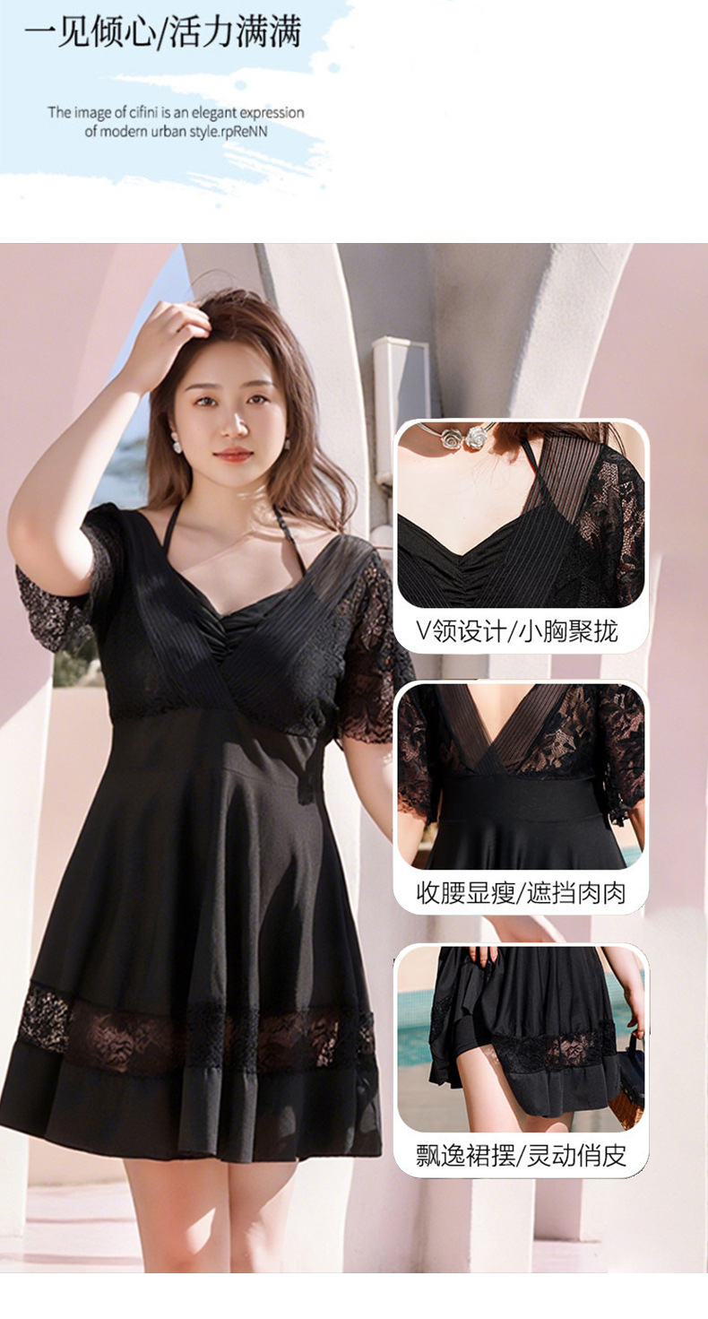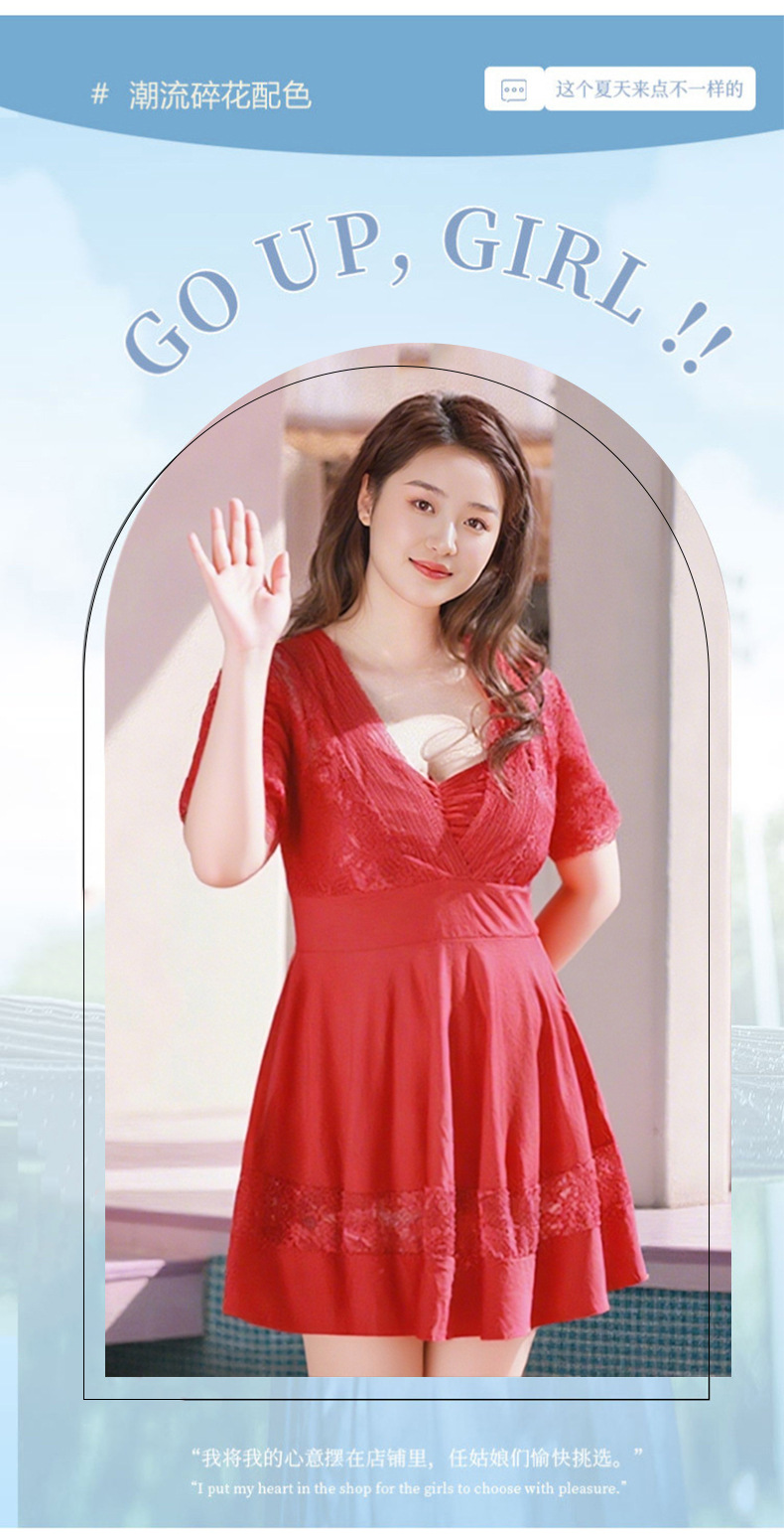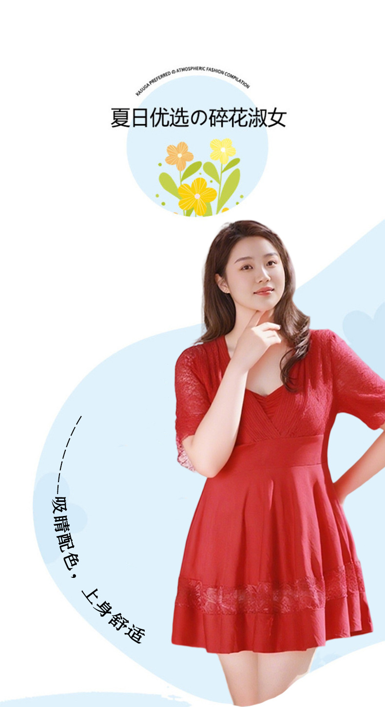 여성용 플러스 사이즈 수영복, 루즈한 레이스, 섹시하고 살찐 100kg 온천 스플릿 스커트 스타일 배 커버 슬리밍 하이 웨이스트 수영복스토어 가기