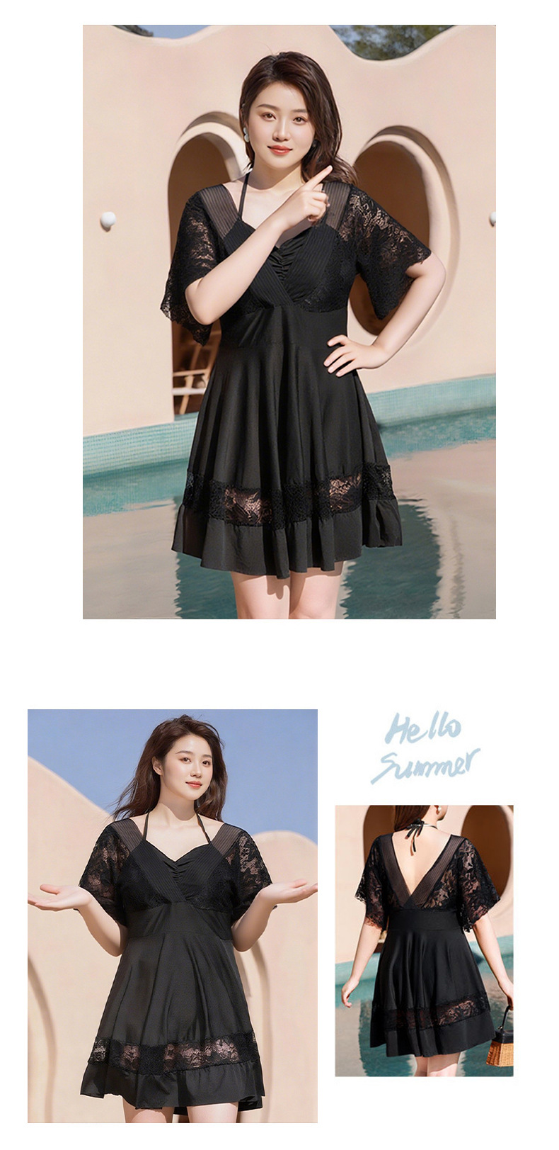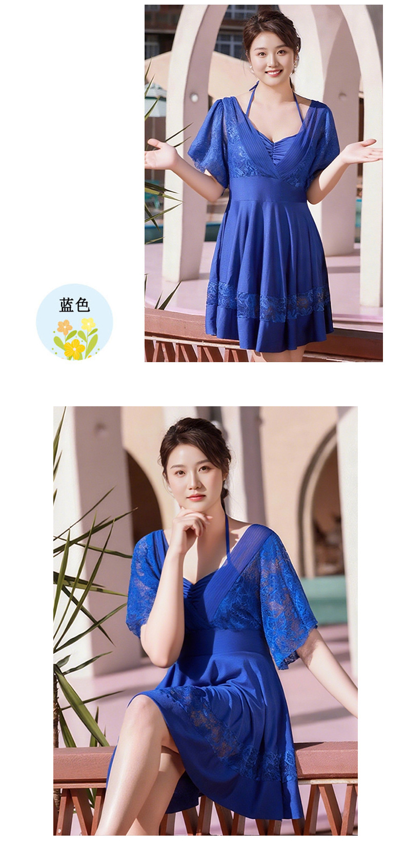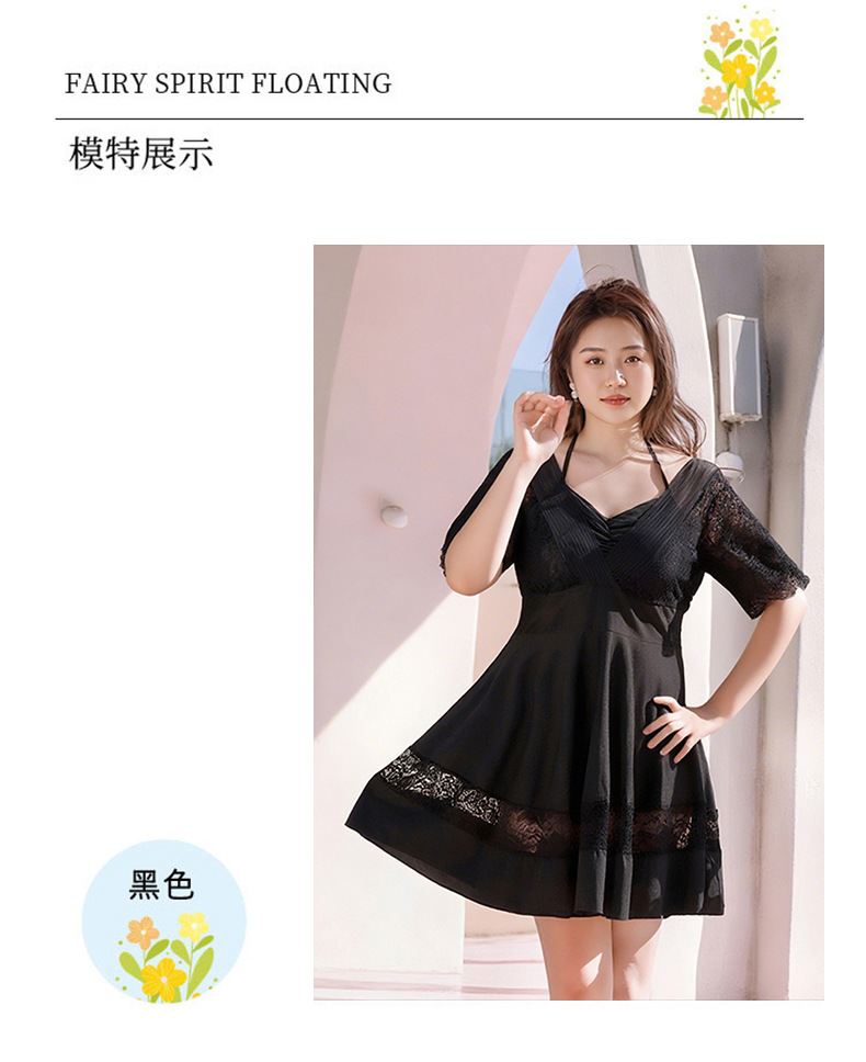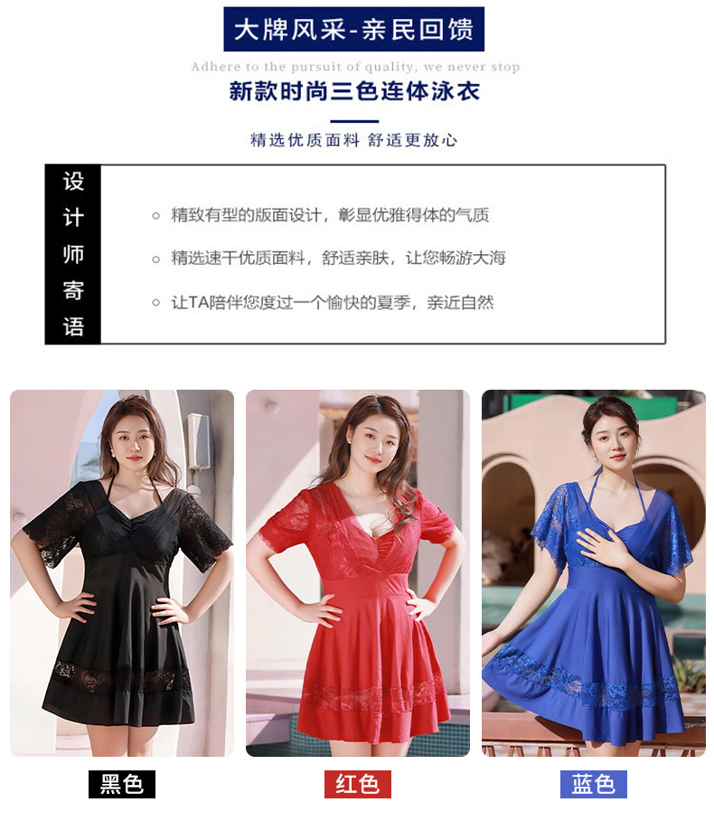 여성용 플러스 사이즈 수영복, 루즈한 레이스, 섹시하고 살찐 100kg 온천 스플릿 스커트 스타일 배 커버 슬리밍 하이 웨이스트 수영복스토어 가기