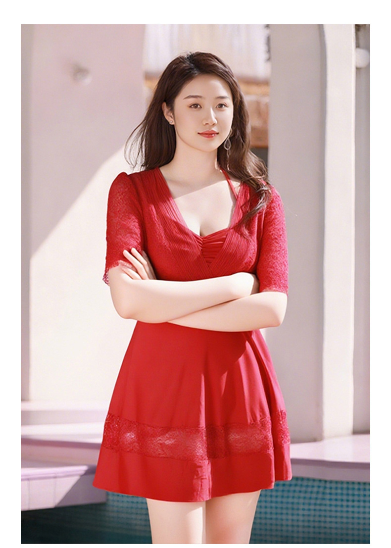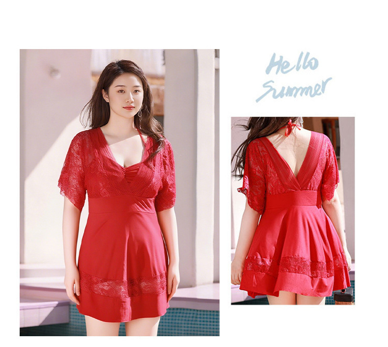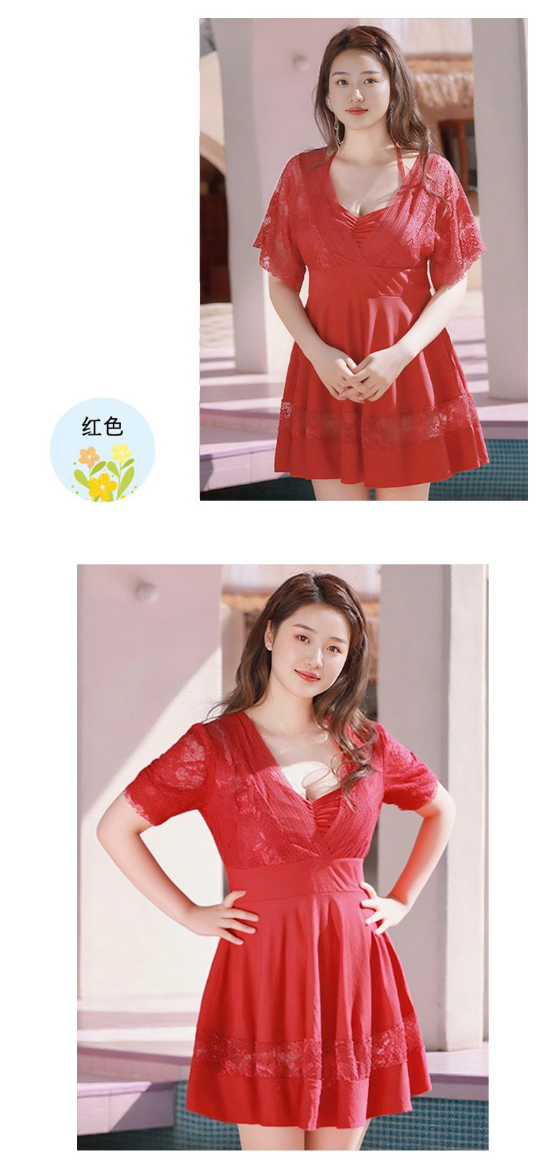 여성용 플러스 사이즈 수영복, 루즈한 레이스, 섹시하고 살찐 100kg 온천 스플릿 스커트 스타일 배 커버 슬리밍 하이 웨이스트 수영복