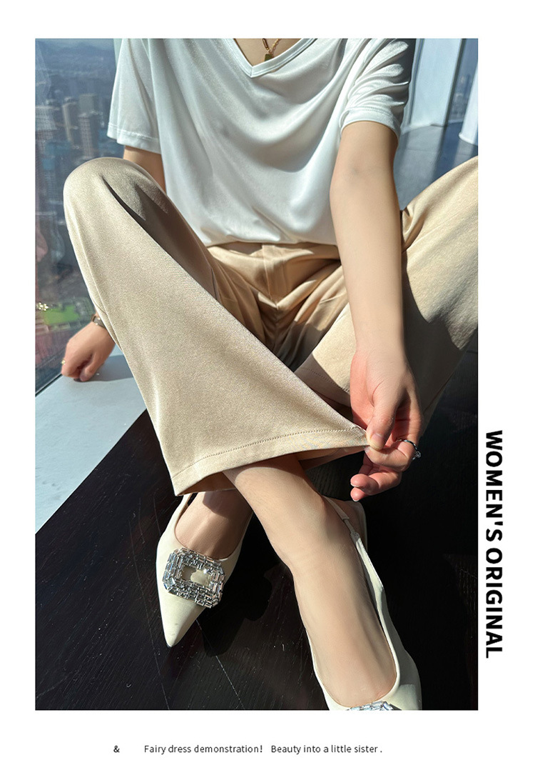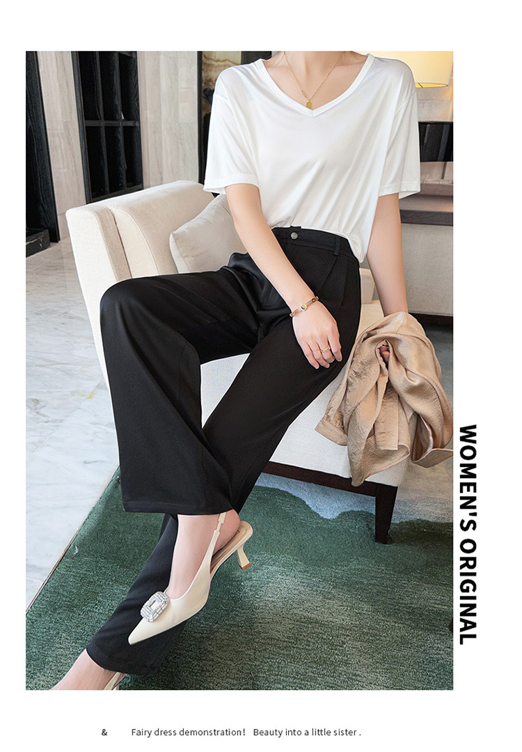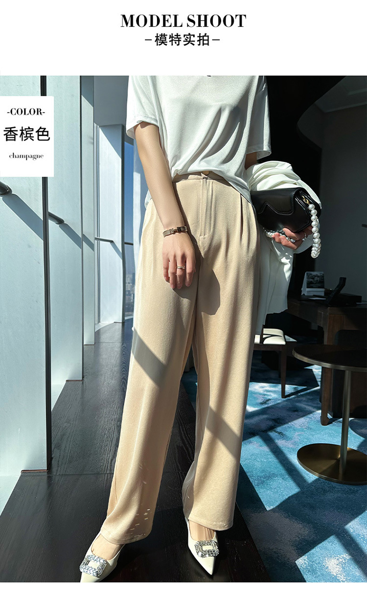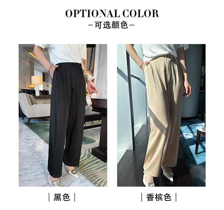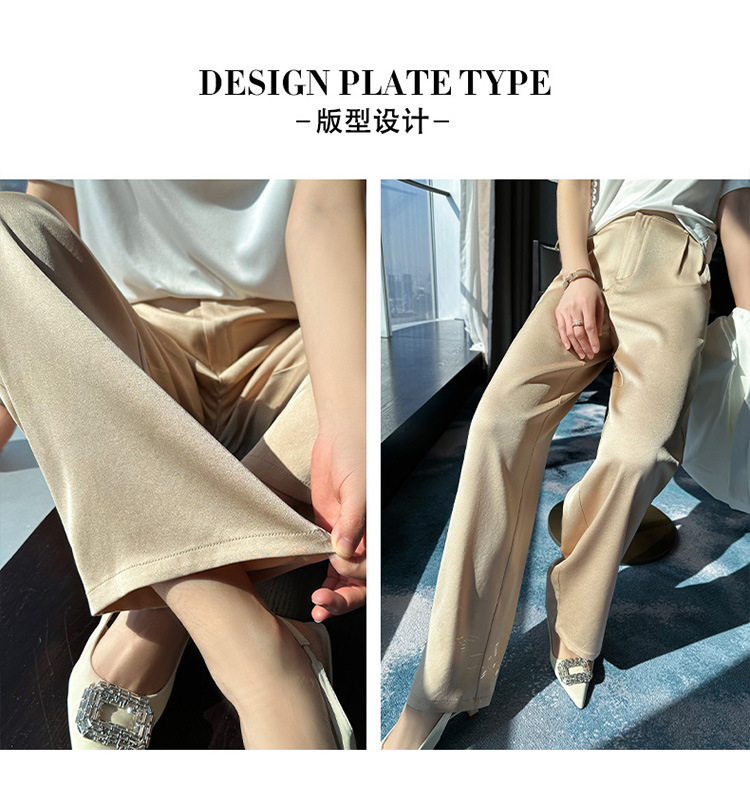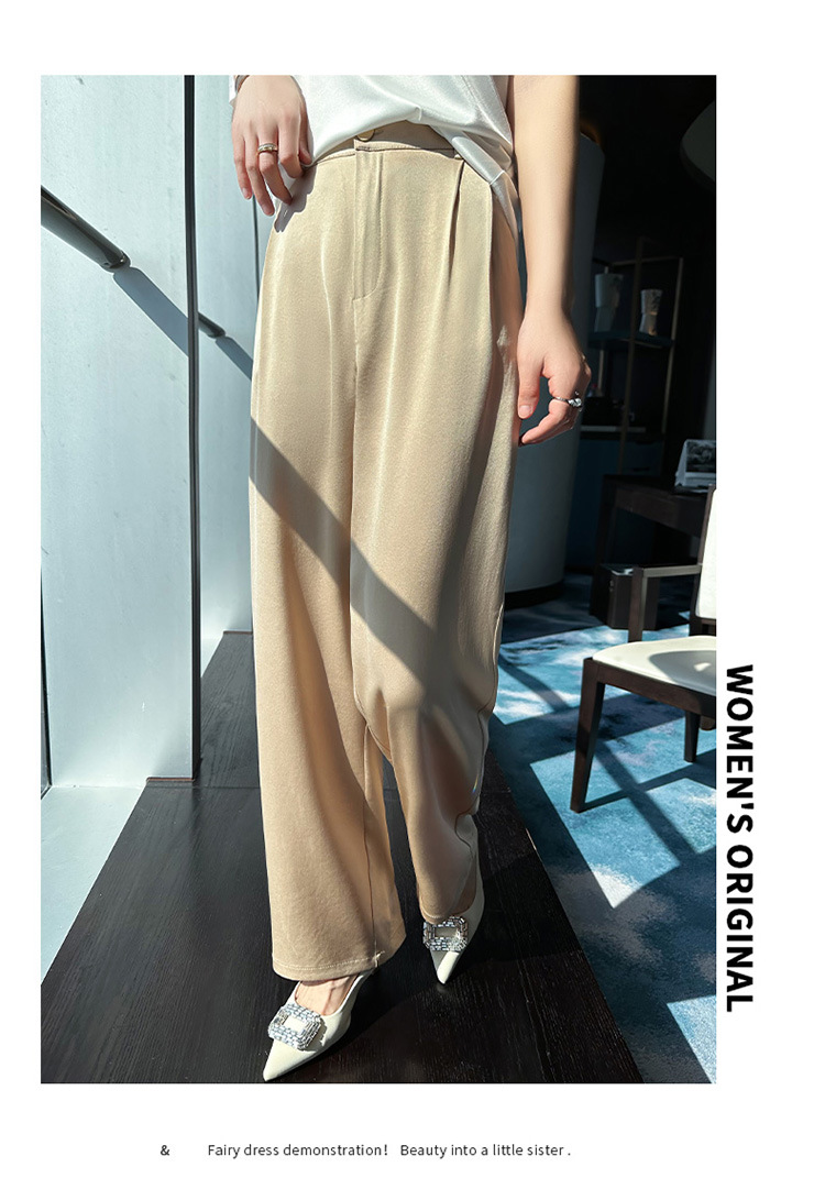 아세트산 캐주얼 바지 봄과 가을 스트레이트 바지 반 탄성 허리 바지 바닥 실크 와이드 팬츠 플러스 사이즈 여성용 바지스토어 가기